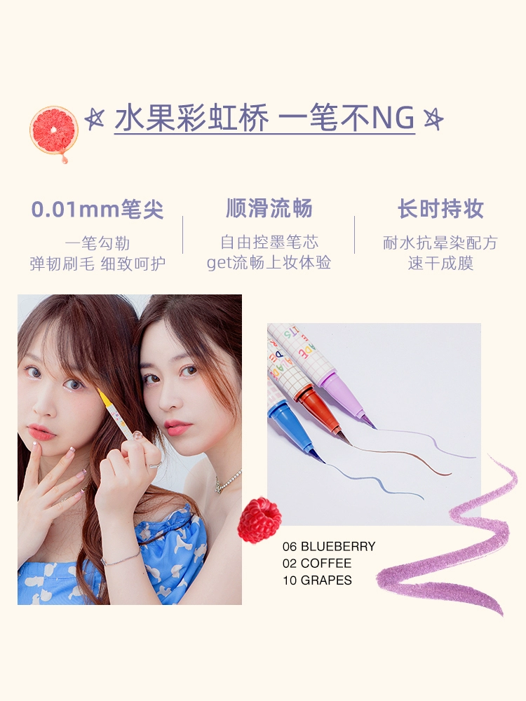 | nameOriginal | FLORTTE Flower Lolia Fruit Salad Color Waterproof Ultra-fine Eyeliner Liquid White Red Non-smudged Women |