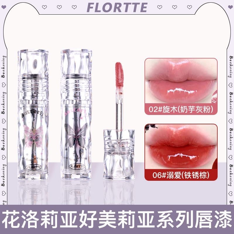 FLORTTE/Flower Lolia Homelia Lip Paint Mirror Water Lip Glaze Lipstick Raincoat Lip Gloss Not Easy to Stick Cup