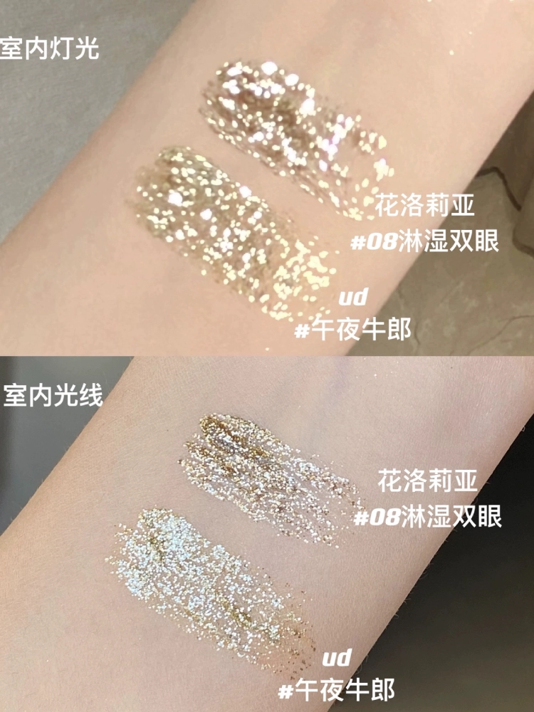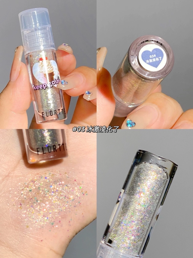 FLORTTE Huaolia liquid eye shadow sequins ultra -glittering, glittering, brilliant crystal high -gloss female lying silkworm pen