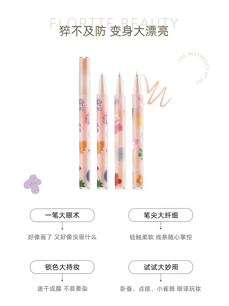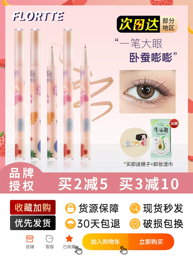 FLORTTE Huaolia Big Beautiful Eyeline Pen Pen Pen Fine Linels lying Silkworm Pen Highlight Waterproof Female Plum