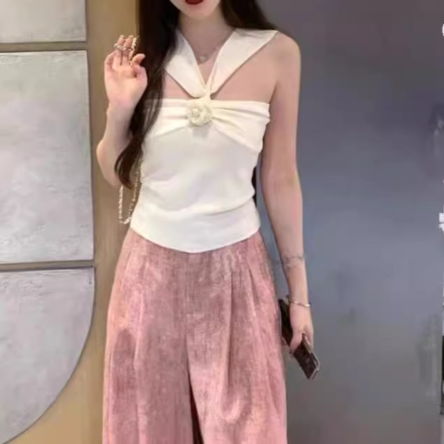 | nameOriginal | Flower Backless Halter Camisole Women's 2024 Summer Slim-fit Spice Girl Short All-match Top for Outer Wear |
