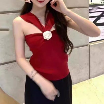 | nameOriginal | Flower Backless Halter Camisole Women's 2024 Summer Slim-fit Spice Girl Short All-match Top for Outer Wear |