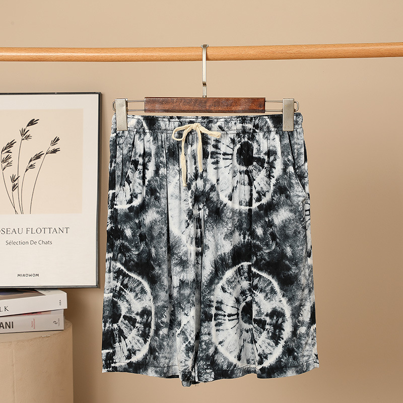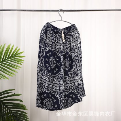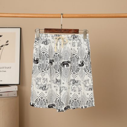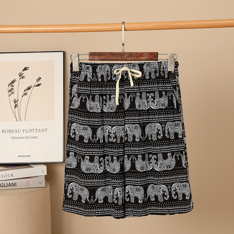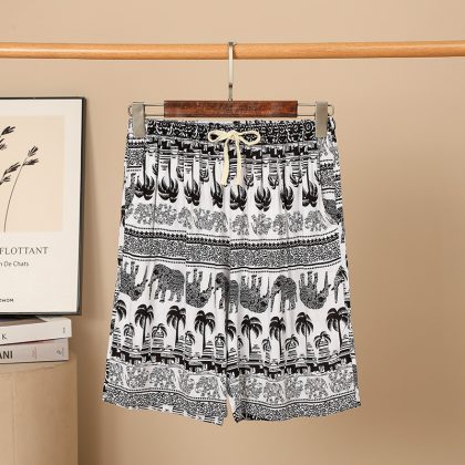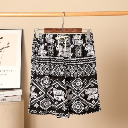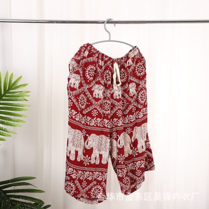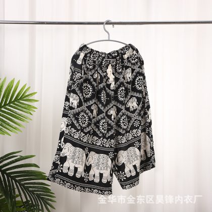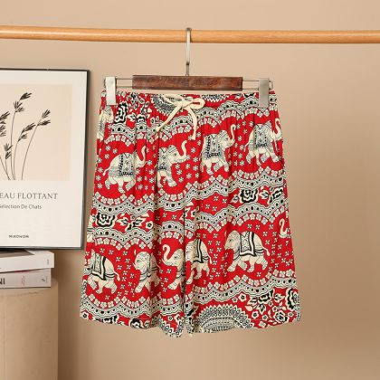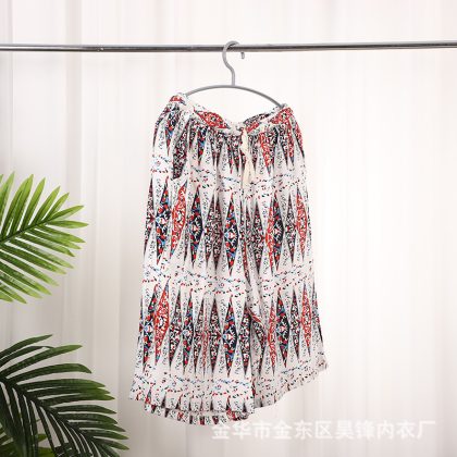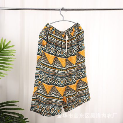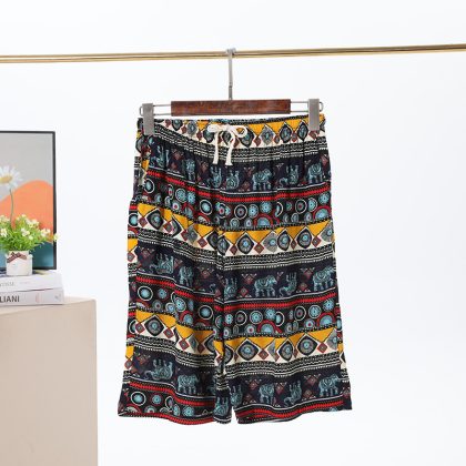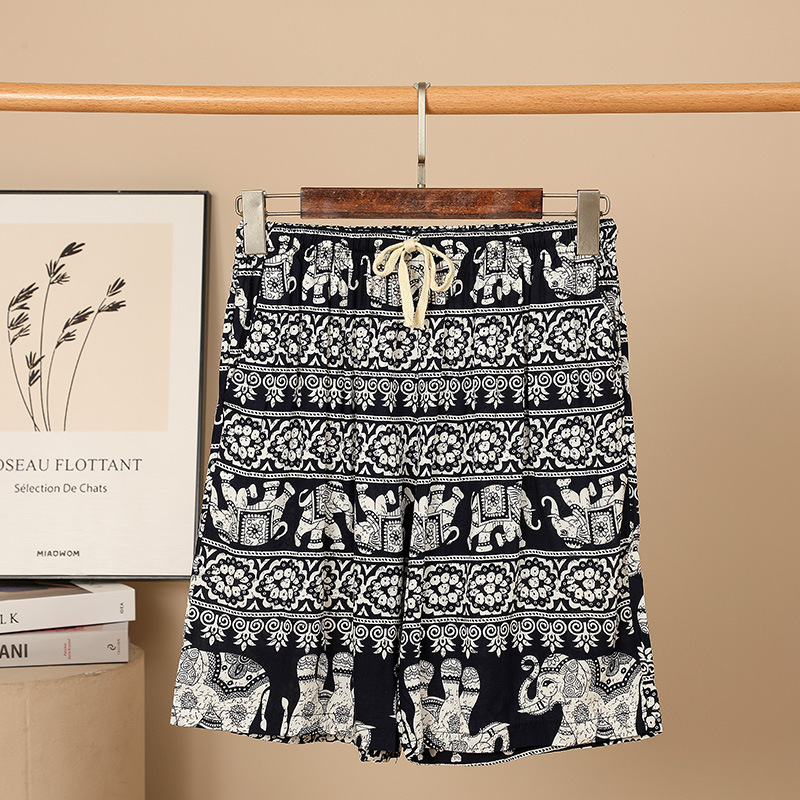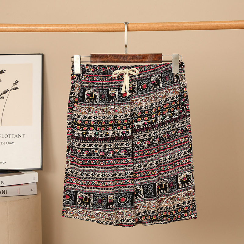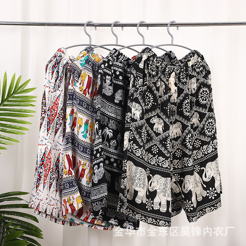 Flower Dance Cotton Silk Shorts for Men and Women Ethnic Style Rayon Printed Summer Mid-length Pants Plus Size Cotton Silk Beach Pants Factory