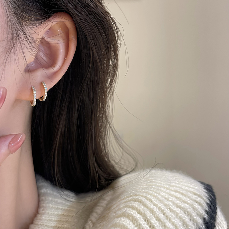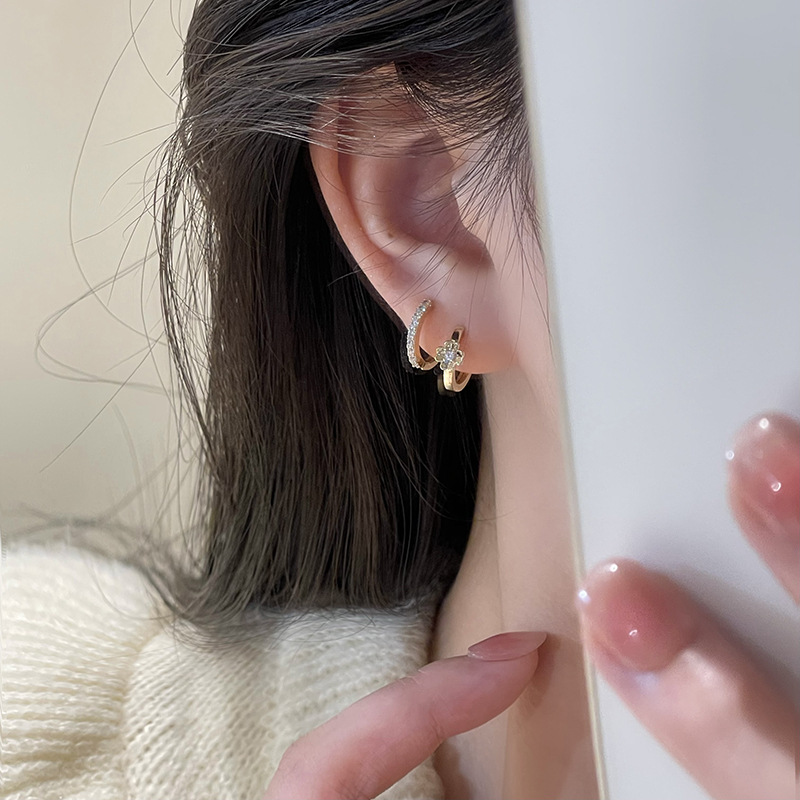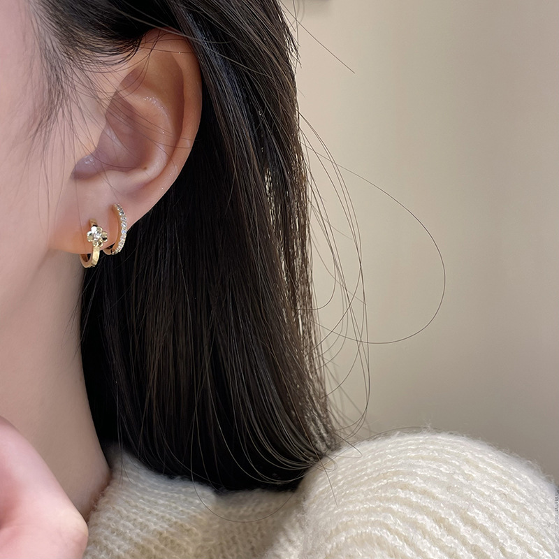 Flower Ear Buckle Female Temperament Shining Row Diamond Ear Ring Simple Small Set Zircon Ring Earrings Sleeping Without Picking