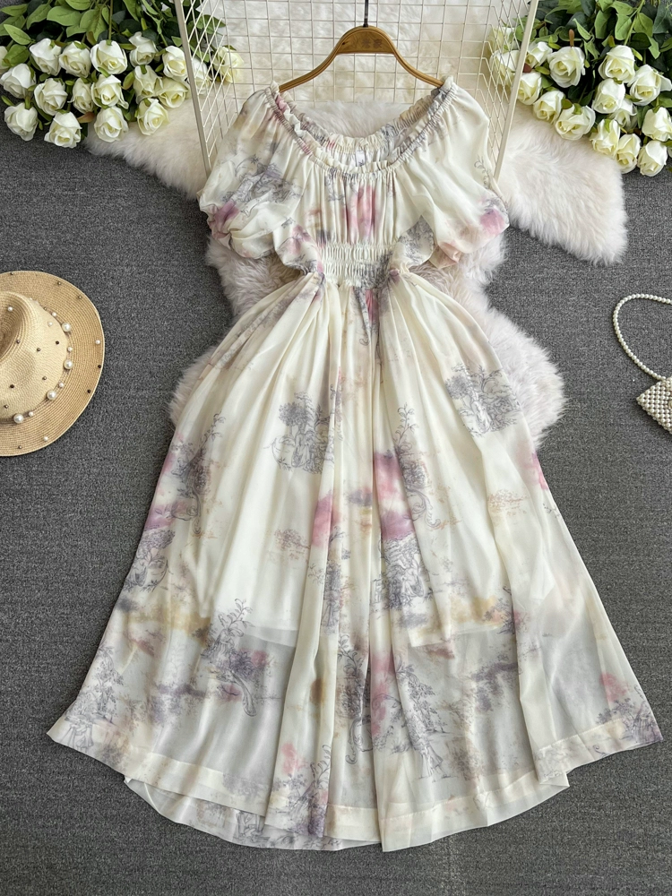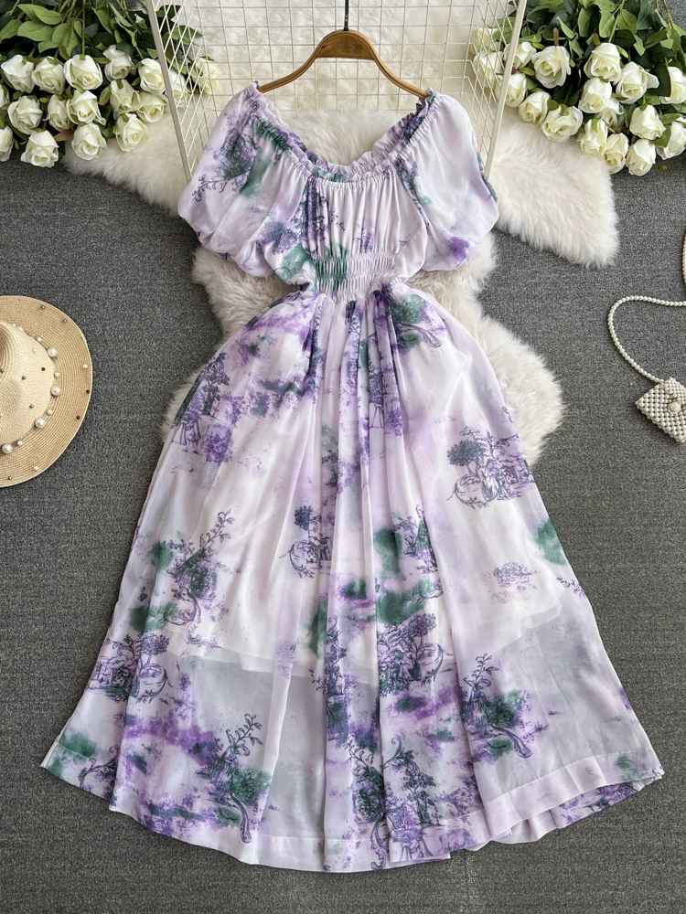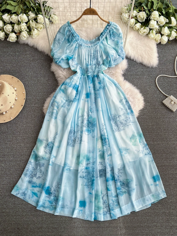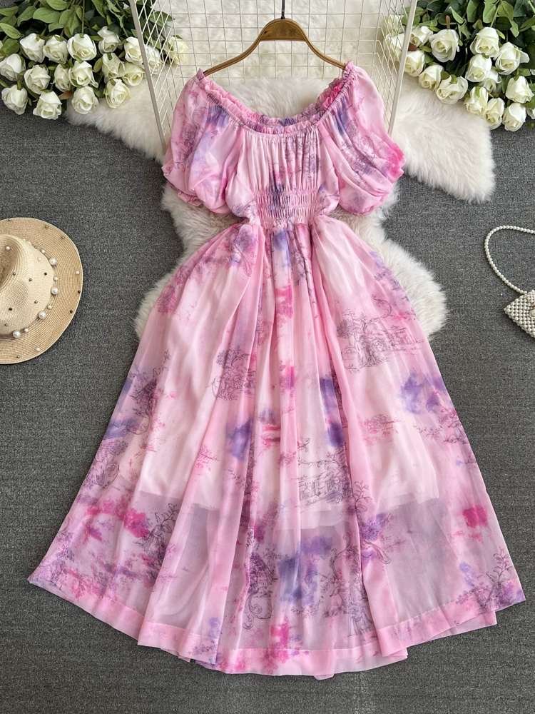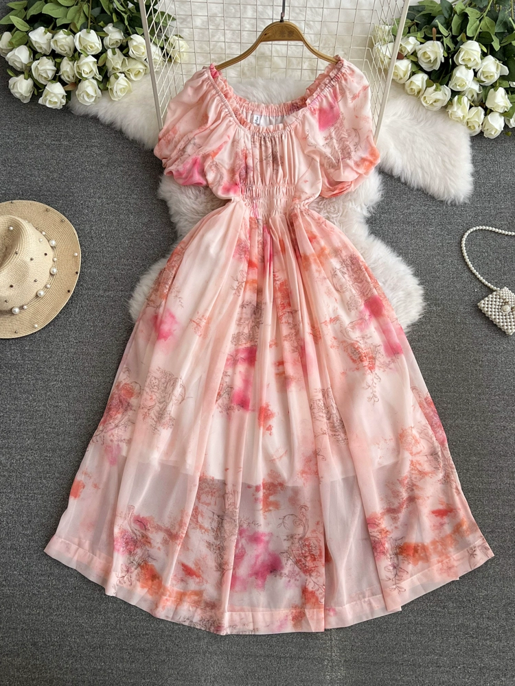 Flower fairy tie-dyeing waist-tightening fairy dress