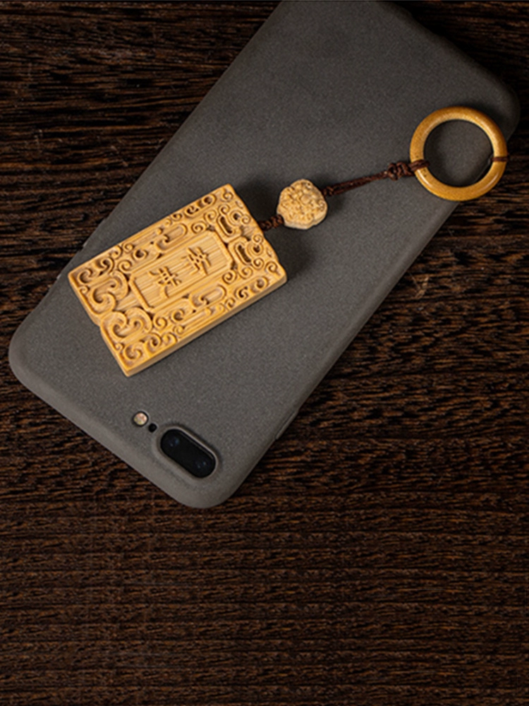Flower fish seed pattern bamboo text accessories pull the pendant ring ring car keychain handmade handmade
