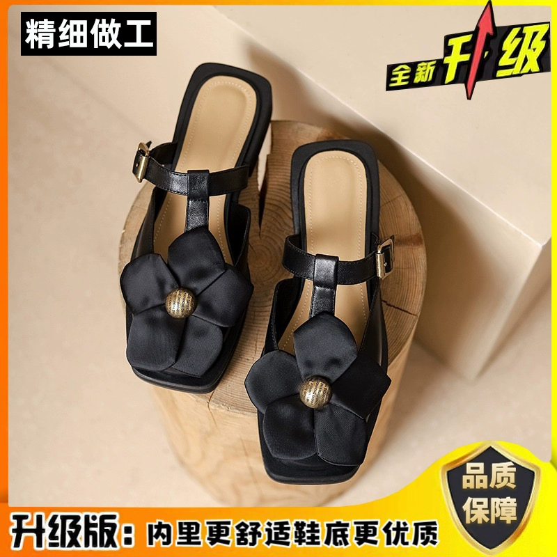 | nameOriginal | Flower flat leather sandals for outer wear |