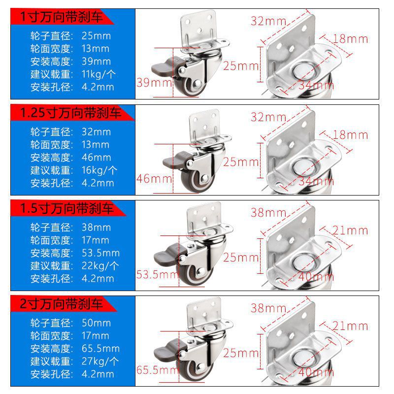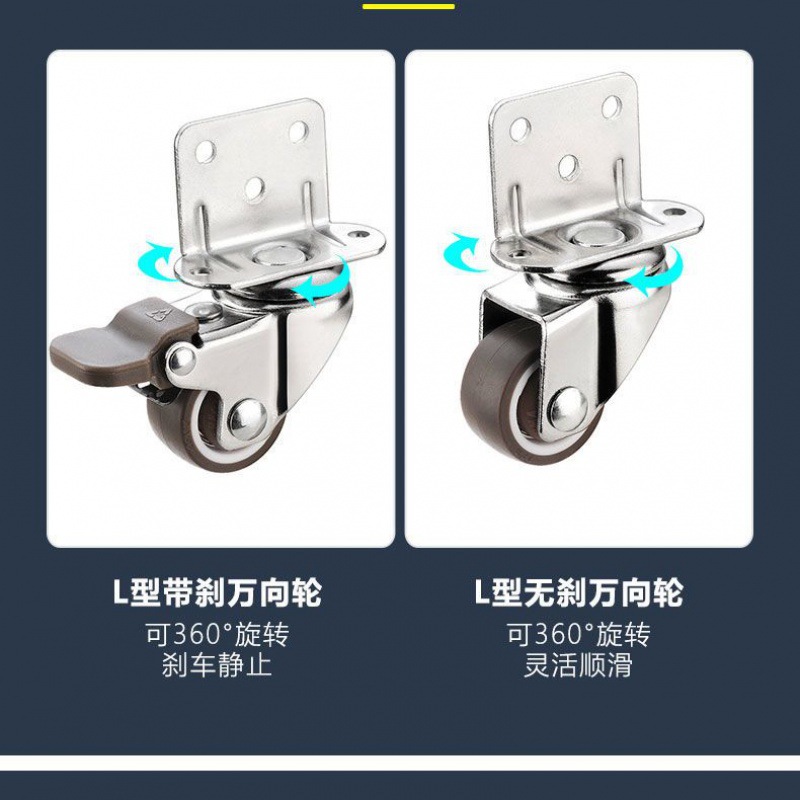| nameOriginal | Flower frame wheel L-shaped clamp plate universal wheel baby bed wheel rubber pulley table caster silent brake steering wheel  |