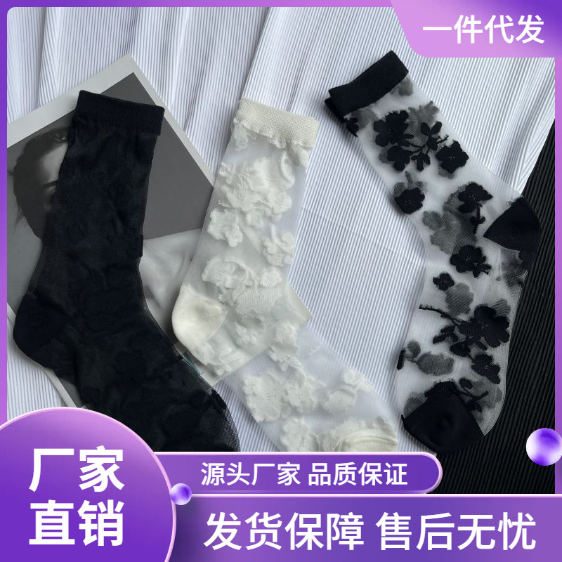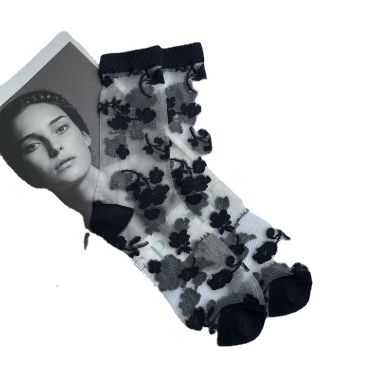 | nameOriginal | Flower jacquard ultra-thin transparent crystal stockings glass silk black and white flower stockings |