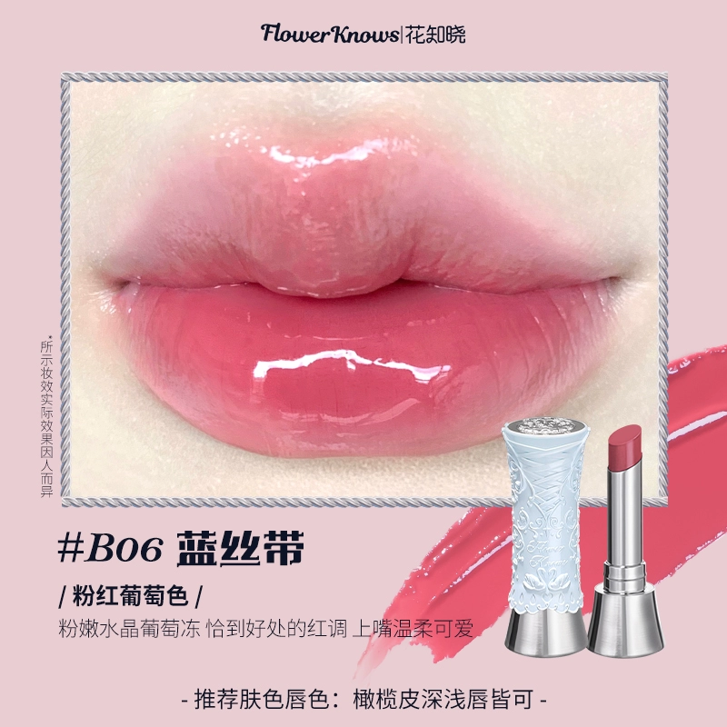Flower Knows Swan Ballet solid lip glaze, mirror water gloss lipstick, film-forming, non-stick cup, non-fading, moisturizing pouty lips