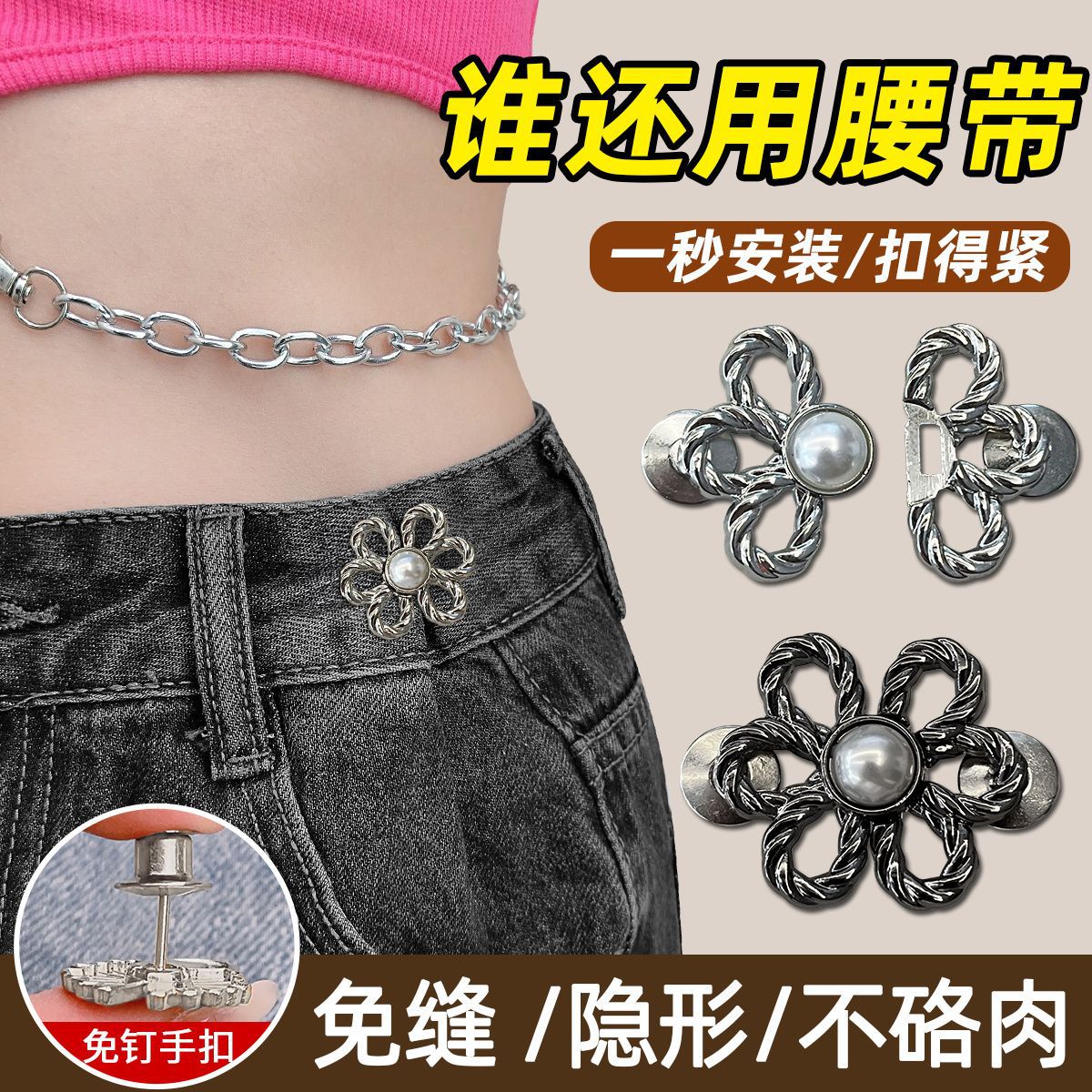 | nameOriginal | Flower Pin Cyber Celebrity Waist Tightening Pants Waist Tightening Artifact Jeans Size Adjusting Small Clothes Anti-Light |