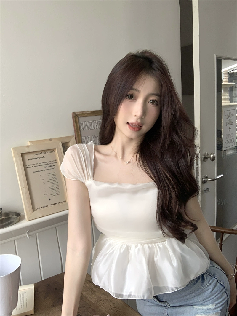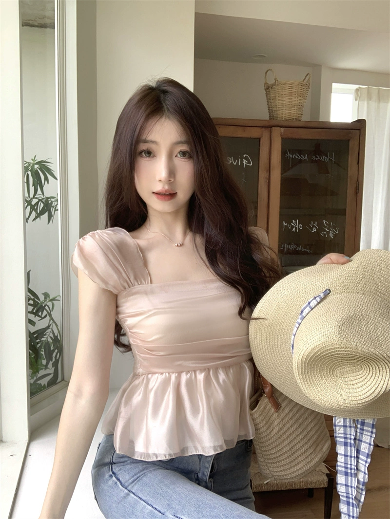 | nameOriginal | Flowing pleated square-neck slim-fit sleeveless chiffon shirt |