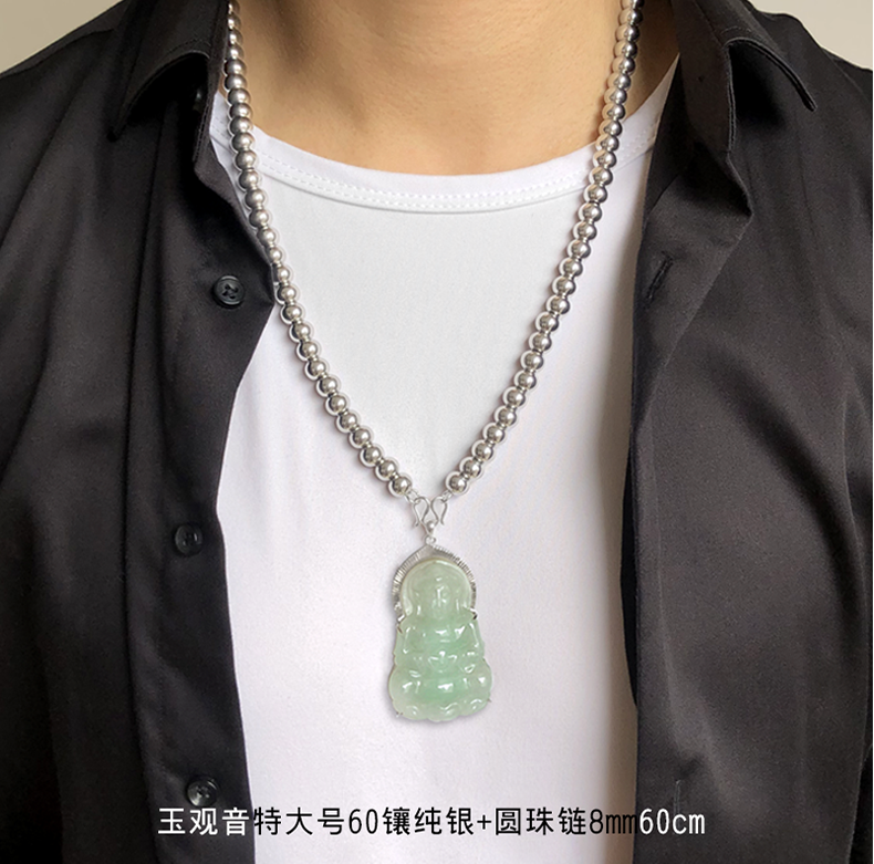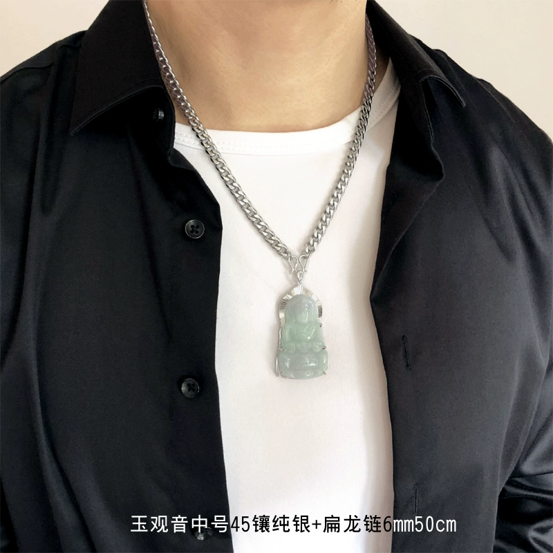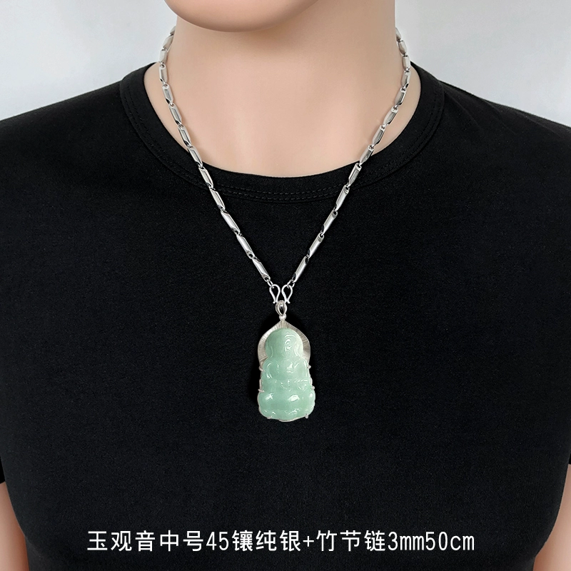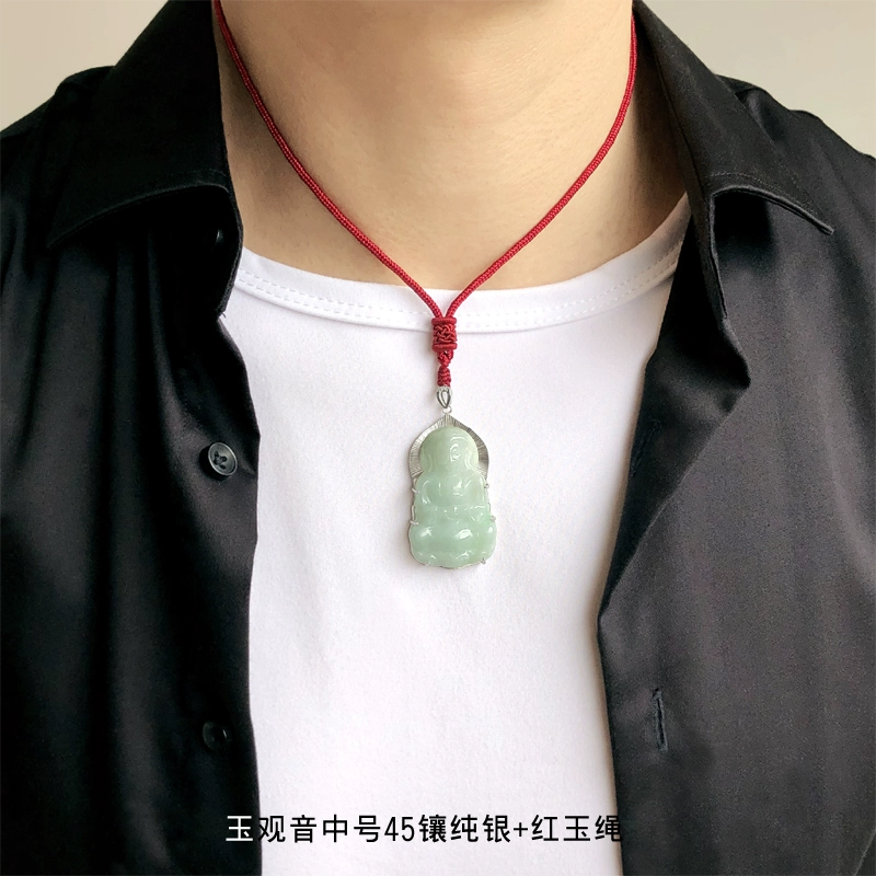 | nameOriginal | Fo Guang Jade Guanyin Pendant Necklace Men's Year of Life Pendant Inlaid with Silver Natural Old Pit Jade Guanyin Jade with Certificate |