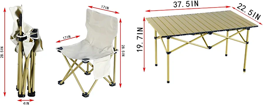This product boasts a sturdy construction made of high-quality aluminum alloy and high-density 600D Oxford cloth, ensuring durability and easy maintenance. Its thick frame and stable support structure can hold up to 300 lbs. The portable design allows for easy installation and folding, with a roll-up desktop and foldable chair that can be stored in the included storage bag. This set is perfect for outdoor activities such as camping, fishing, BBQ, picnic, backyard party, and beach trips. The triangular stable design of space aluminum alloy makes it lighter, stronger, and more durable. Our customer service team is available to assist you with any questions or concerns during use. Enjoy a fun-filled adventure with your loved ones!