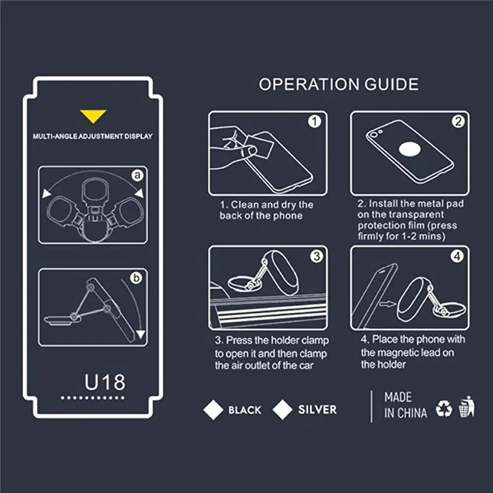 Introducing the Smart Size Magnetic Phone Holder, a versatile and practical solution for your phone-holding needs. This package includes two silver plates and an extra adhesive patch for easy installation on your phone or under its cover. With 360-degree base rotation and height adjustability, you can easily show your device to others in the car, office, or at home. The holder’s six powerful magnets ensure your phone stays securely in place, even on bumpy roads. To maximize holding power, clean the surface of your phone or cover and paste the steel plate on a clean, even surface. Please note that this model is not suitable for curved surfaces. Our mini phone holder fits seamlessly into your daily routine and is perfect for watching recipes in the kitchen. Our Blue Ocean Car Phone Mount is easy to install, residue-free, and multipurpose, making it the perfect solution for your phone-holding needs.