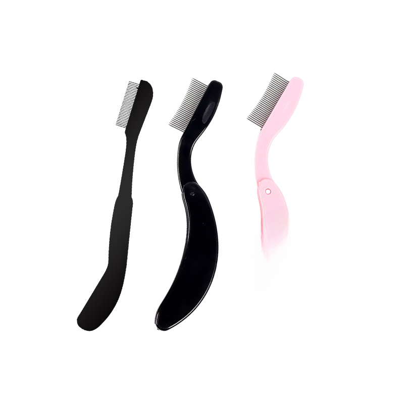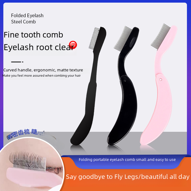 Foldable portable steel comb steel needle eyelash comb eyelash steel comb eyelash brush curved plastic handle eyelash brush