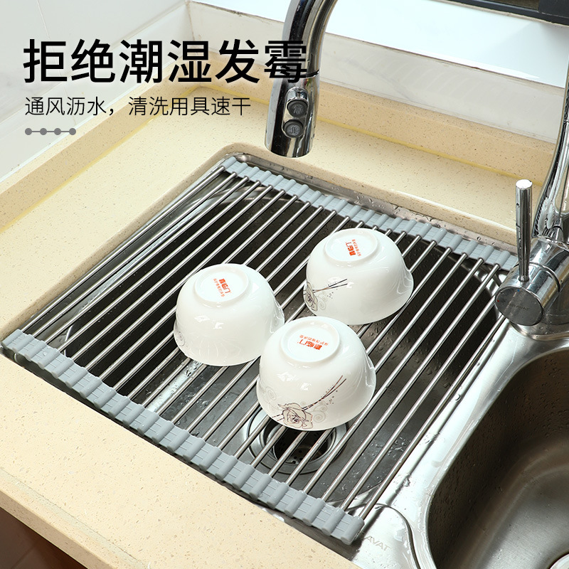 Foldable Silicone Drain Rack Kitchen Sink Filter Roll Bowl and Pot Filter Pad Drain Rack Sink Water Plate Filter Rack