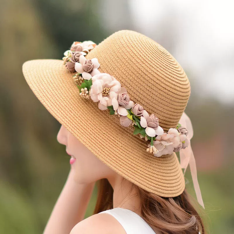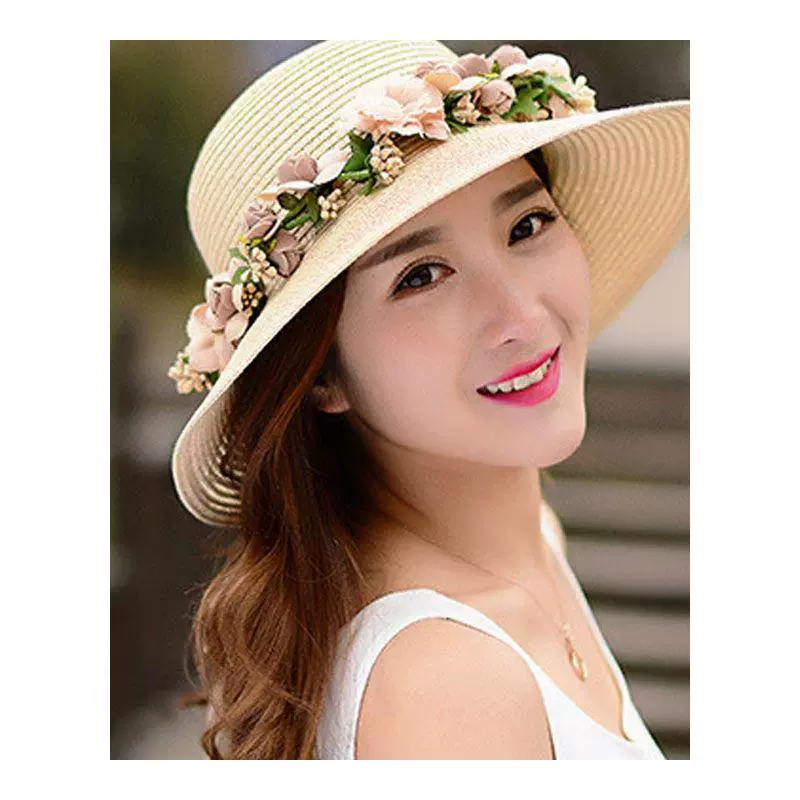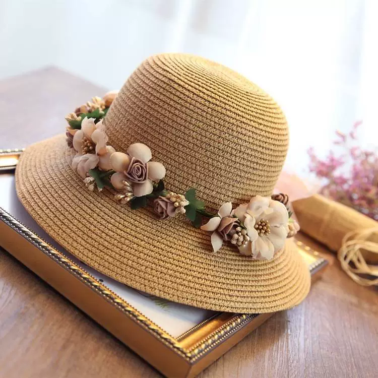Foldable straw hat women’s summer wreath straw hat small fresh sun protection sun hat travel seaside beach hat new style