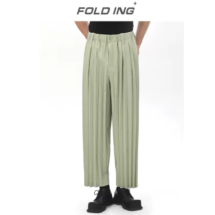 | nameOriginal | FOLDING Miyake accordion pleated handmade straight trousers summer loose tight light green casual pants men FF286 |