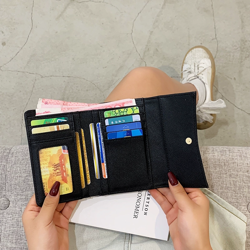 Folding small wallet for women, short, exquisite, high-end, multiple card slots, fashionable and simple, student card holder, all-in-one bag, niche design