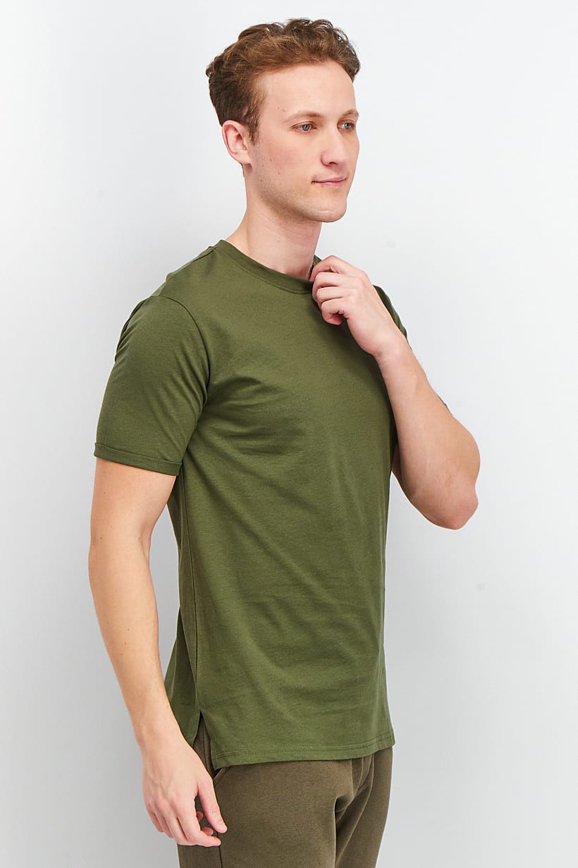 This sportswear t-shirt is made of 100% cotton and is machine washable. It has a sportswear fit and is designed for training. The t-shirt is light in thickness and comes in a plain/solid green color. The size shown is international, but please note that the product color may slightly vary due to photographic lighting sources or your monitor settings.