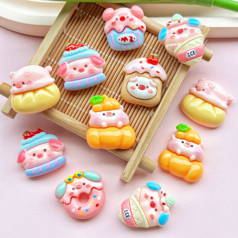 | nameOriginal | Food and Play Cake Pig Series Resin DIY Accessories Mobile Phone Case Hole Shoes Refrigerator Patch Hair Accessories Material |