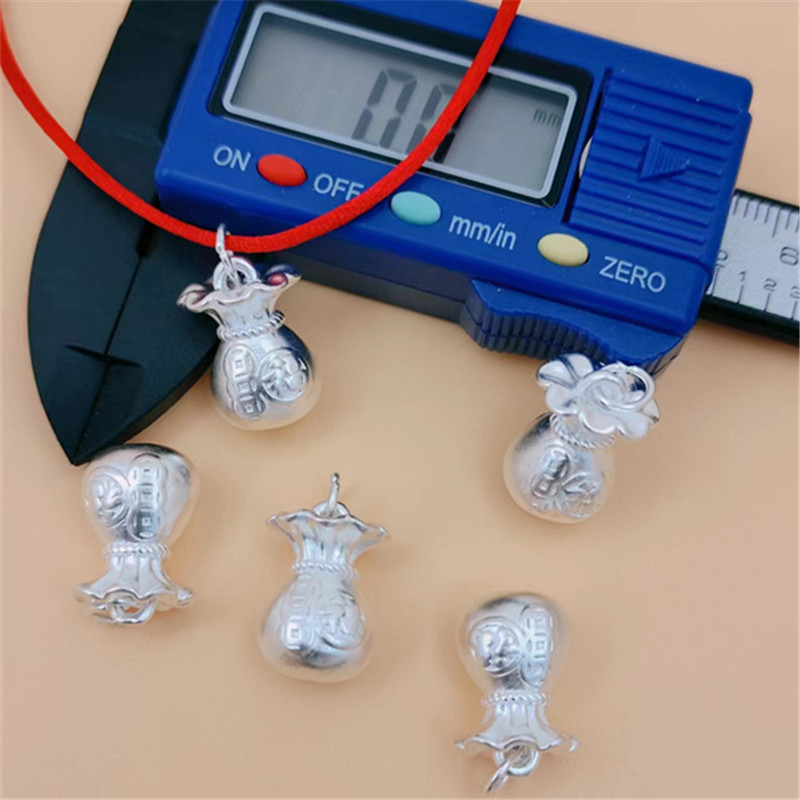| nameOriginal | Foot silver 999 accessories vintage 3D hard silver bag pendant gourd money bag DIY rope bracelet necklace accessories |