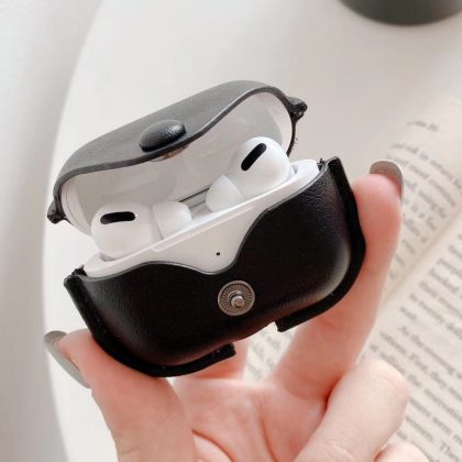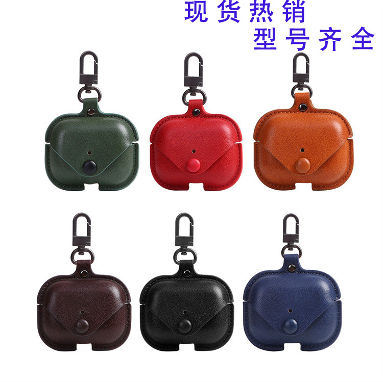 For Airpods pro2 protective case solid color blue ear leather case Apple wireless earphone case Airpods 2/3 generation