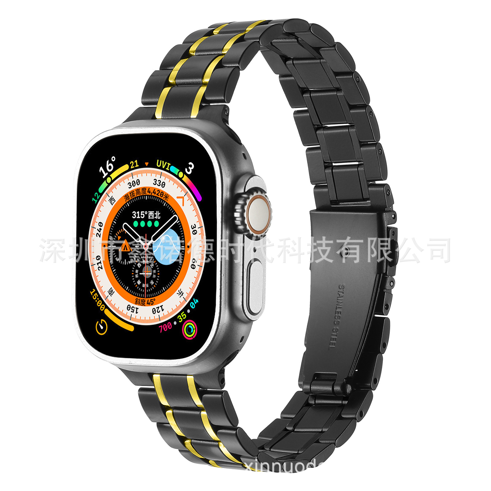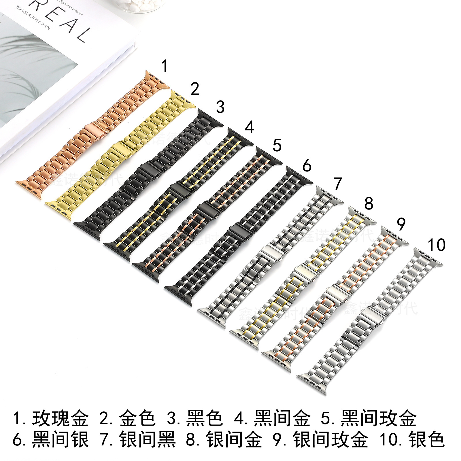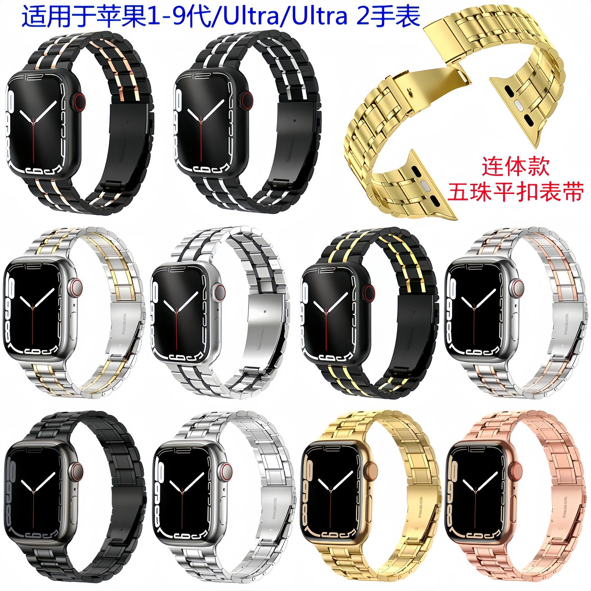 For Apple 9 Generation 5 Bead Strap Apple watch ultra2 5 Bead Double Snap Slim Fit Watch Strap