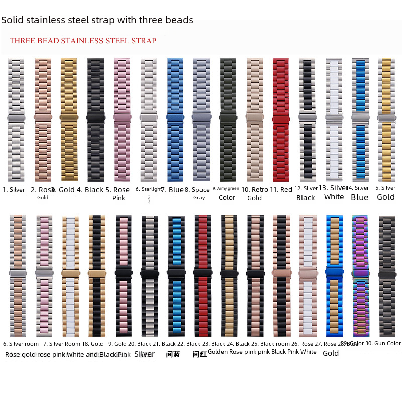| nameOriginal | for apple applewatch strap samsung huawei gt three beads solid stainless steel iwatch watch strap |