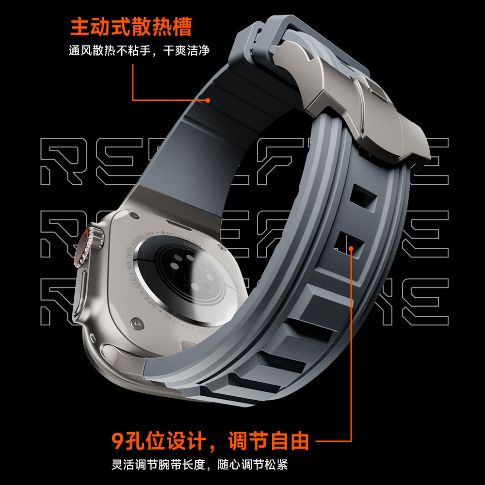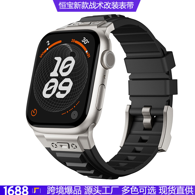 For Apple Watch Strap Iwatch ultra49 High Elastic Silicone Stainless Steel Hengbao Tactical Strap