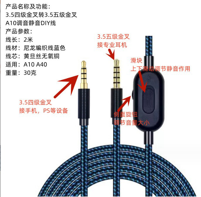 | nameOriginal | For Astro A10 A40 A50 metal head 2M braided cord earphone cord audio extension cord 6.5 feet |