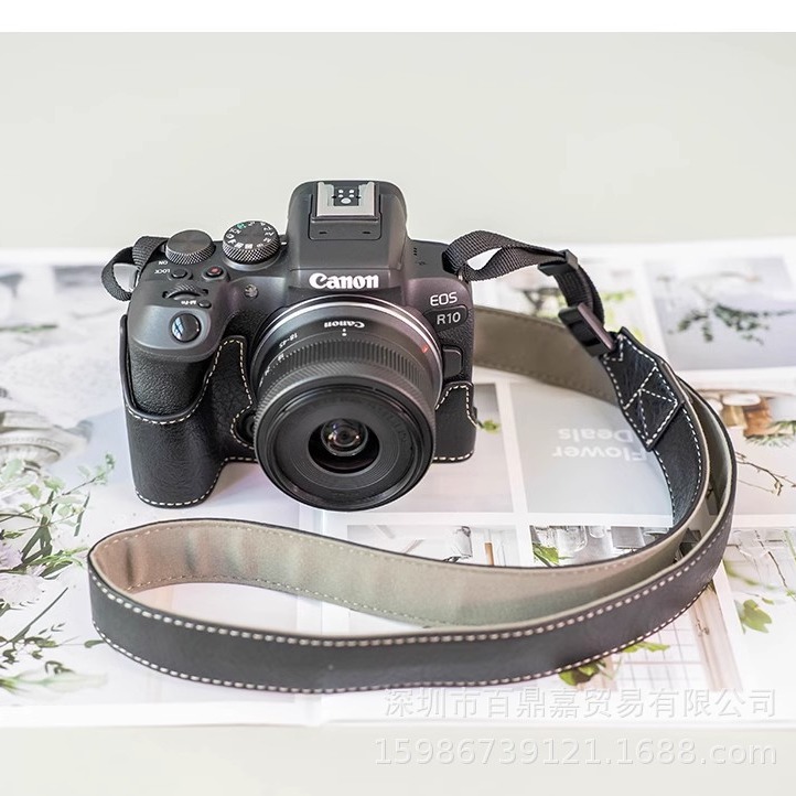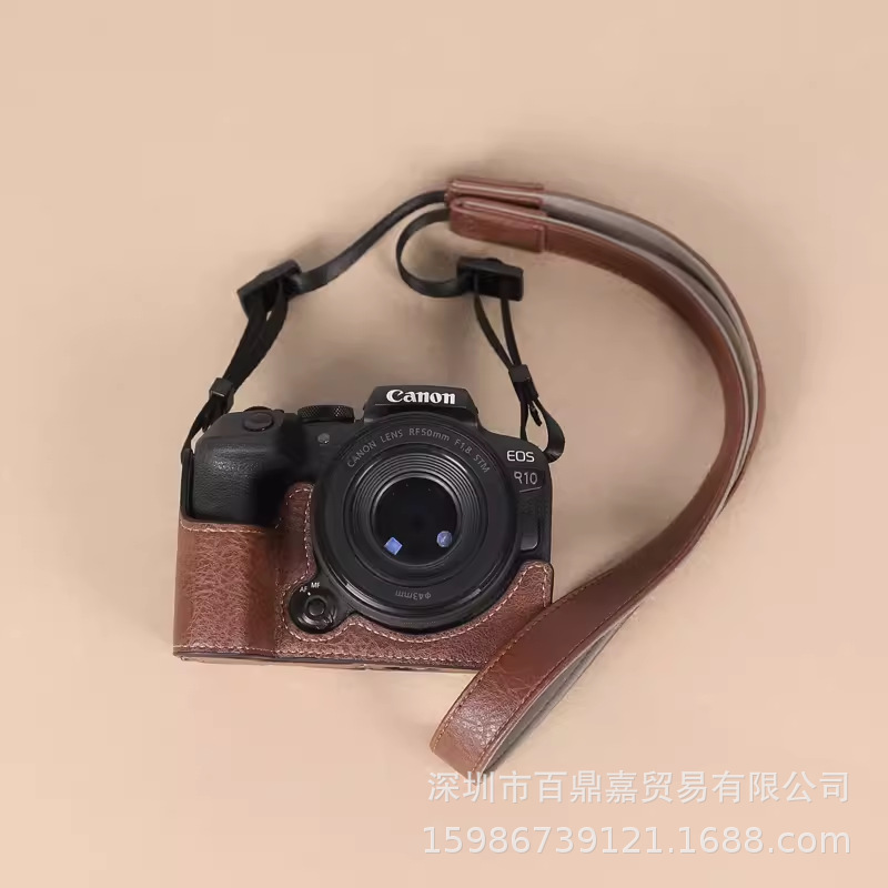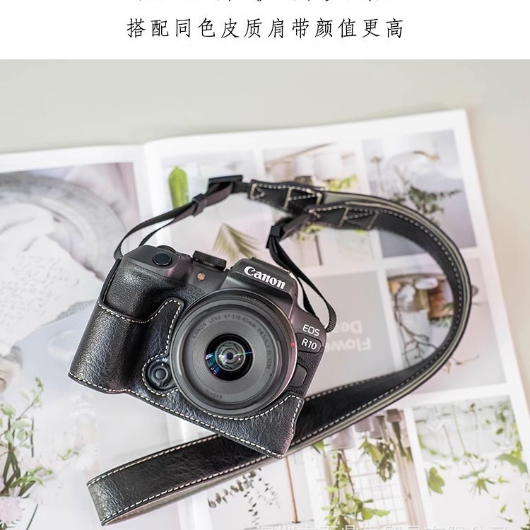 For Canon EOS R10 Leather Case Base R10 Portable Protective Case R10 Micro Single-camera Bag Half Set Retro