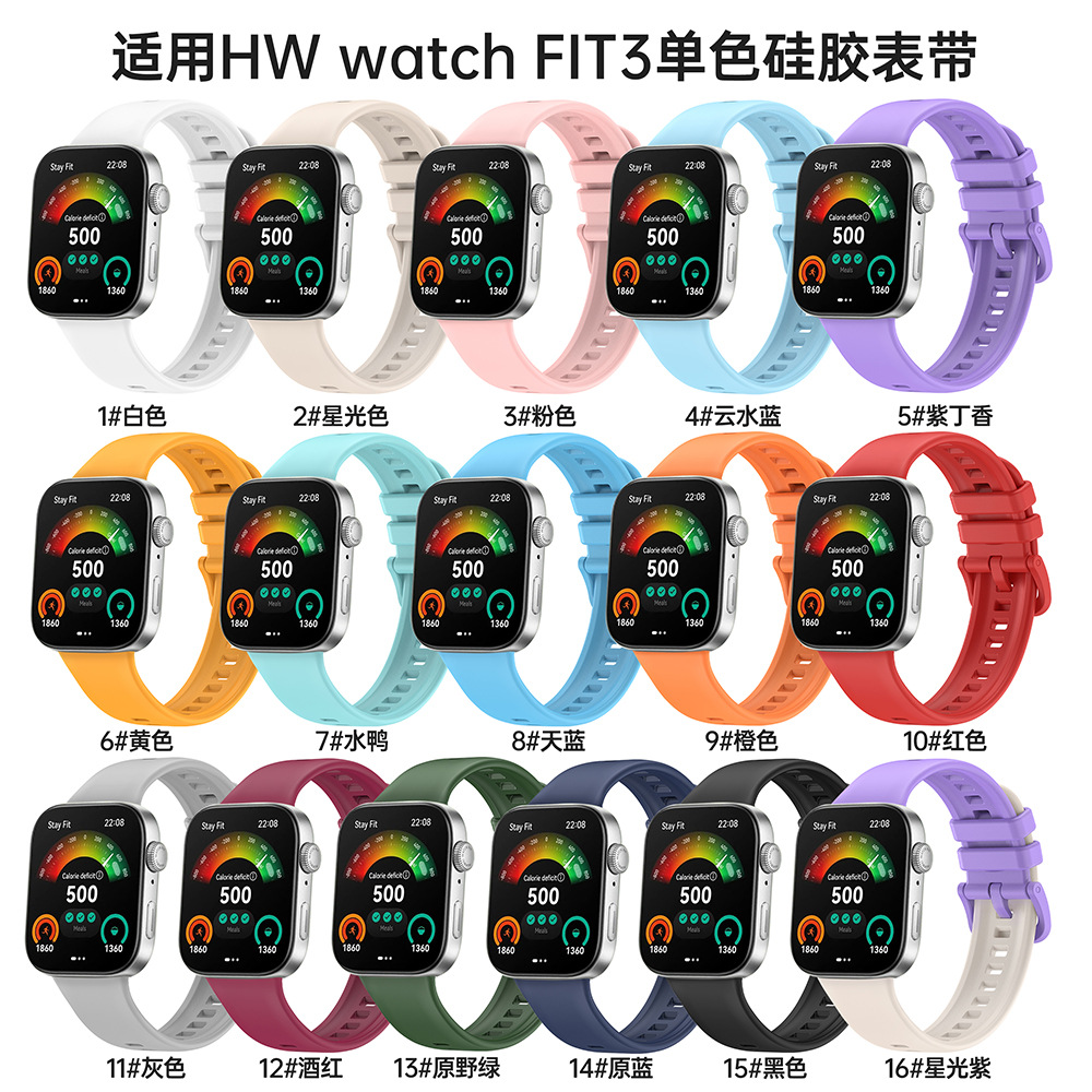 For Huawei Fit3 Silicone Strap Fit3 Monochrome Color Buckle Silicone Strap Smart Watch Silicone Watch Strap