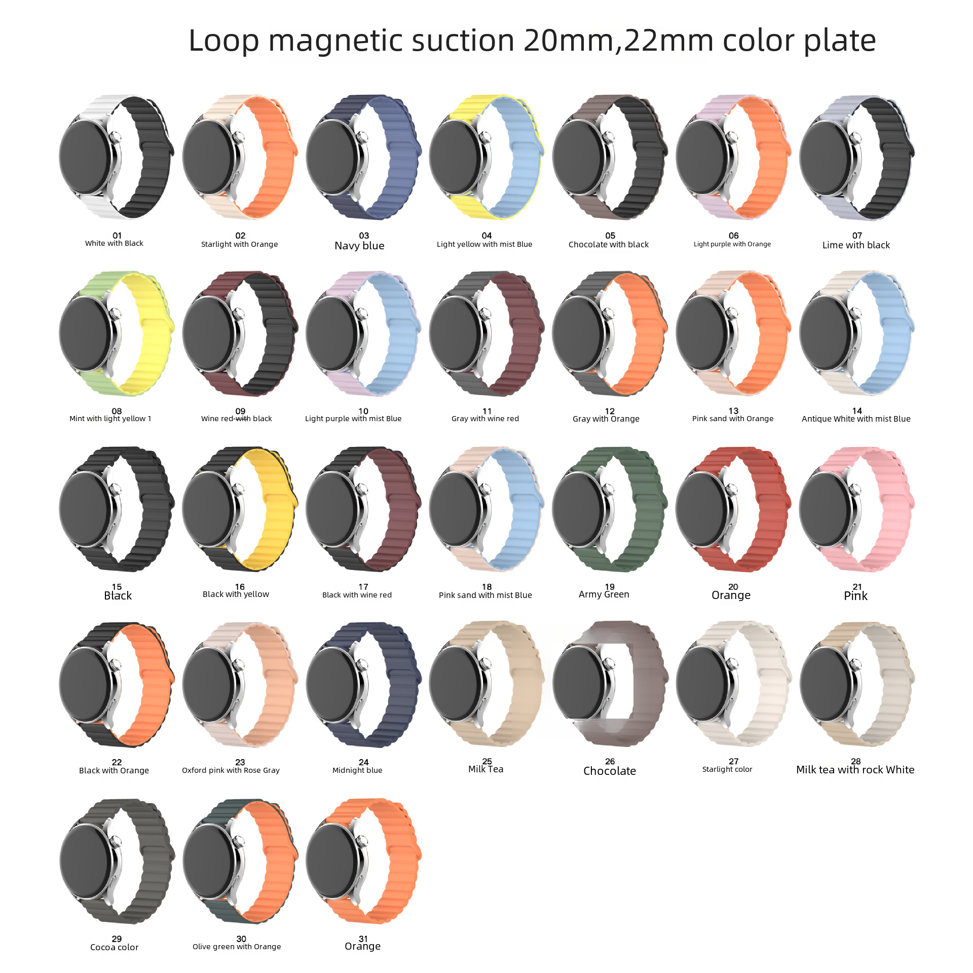 | nameOriginal | For Huawei GT3/Gt4 Double Color Silicone Magnetic Strap Samsung watch6 Universal 20/22mm Watch Strap |