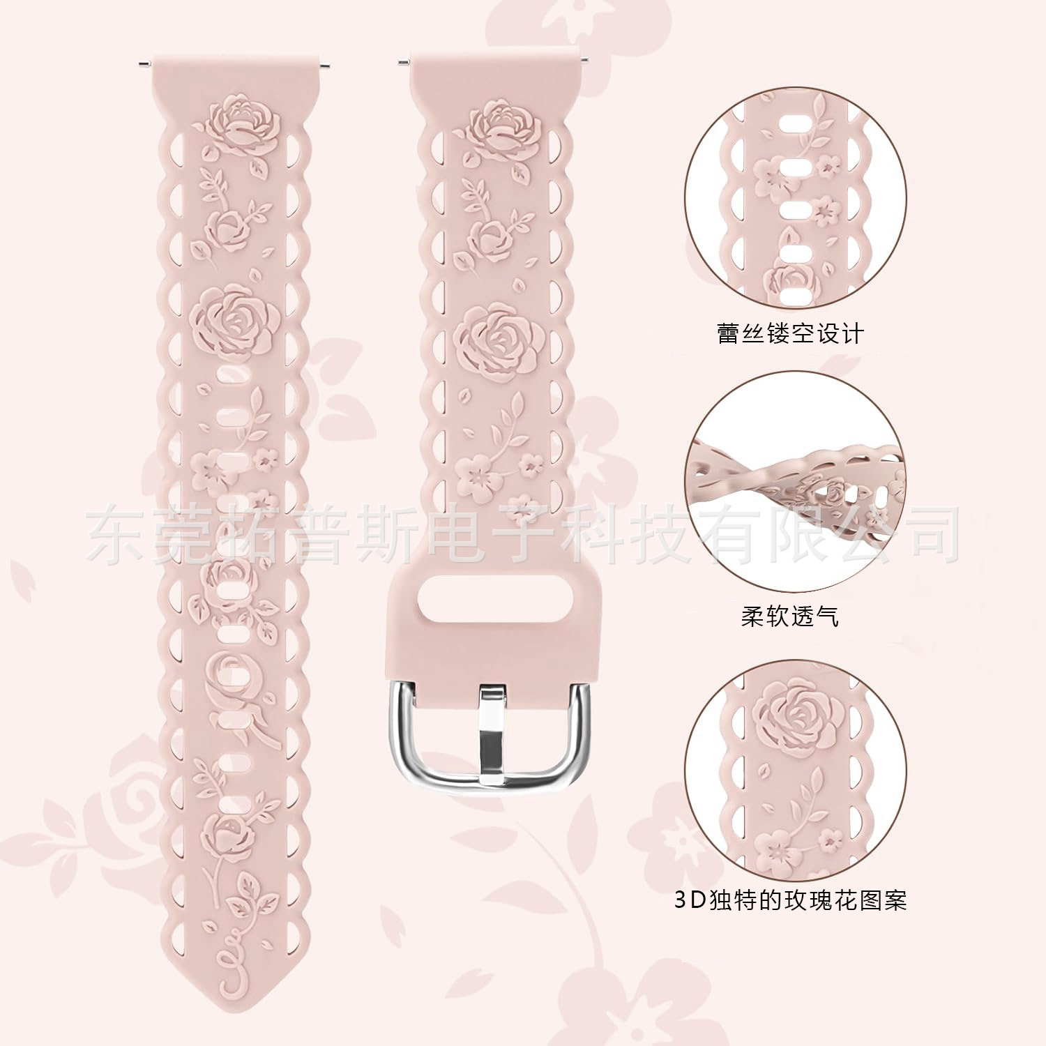 | nameOriginal | For Huawei Samsung Galaxy 20MM Flat Head Strap Bilateral Hollow Embossed Rose Silicone Strap |