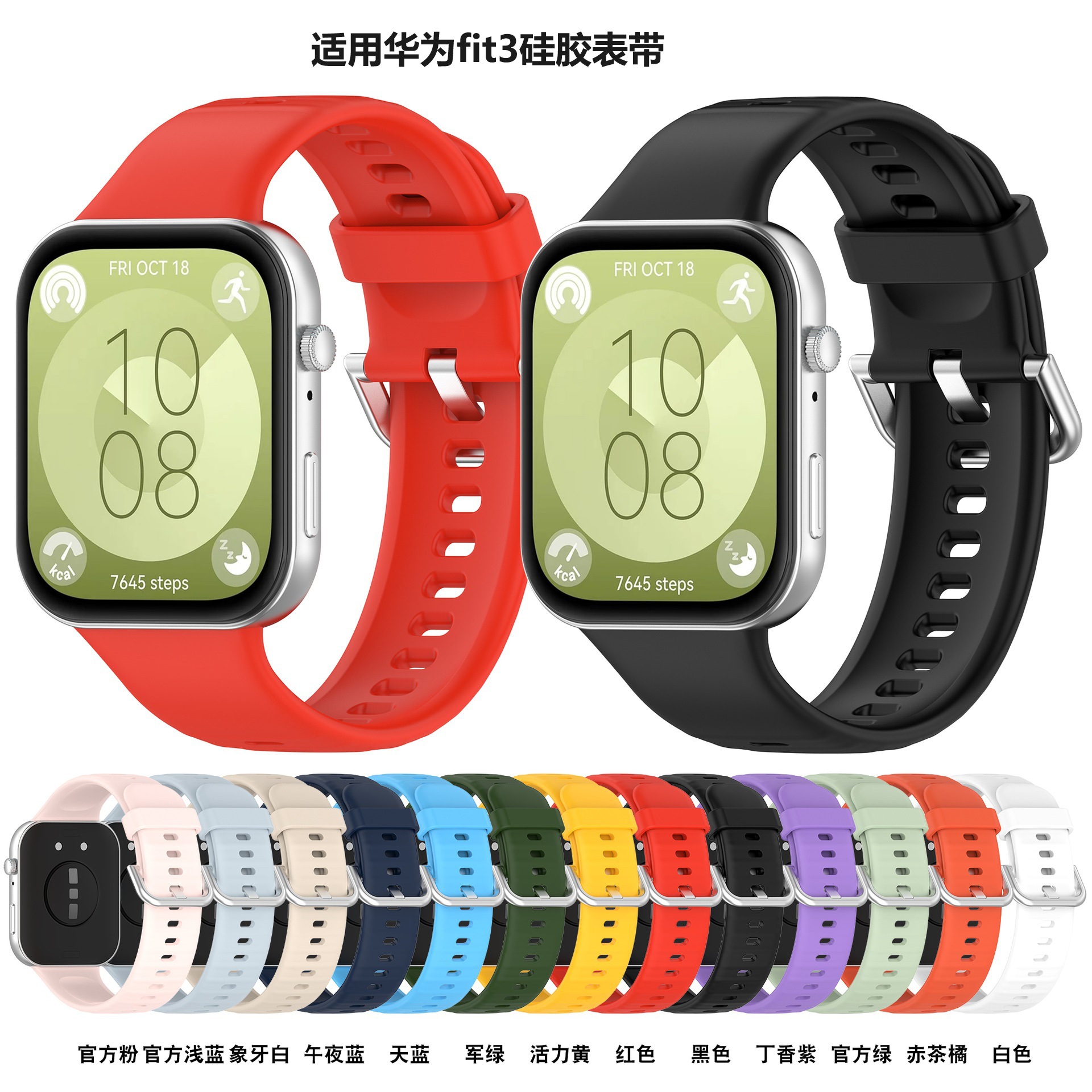 | nameOriginal | For Huawei Watch Fit3 Smart Watch Silicone Strap Fit 3 Official Silicone Silver Buckle Wristband |