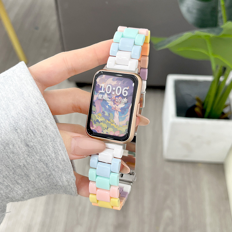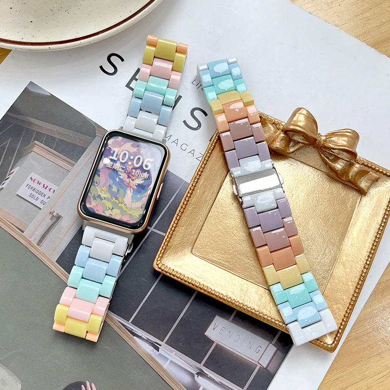 for huawei watchfit2 strap three beads resin watch fit new summer candy rainbow replacement wristband