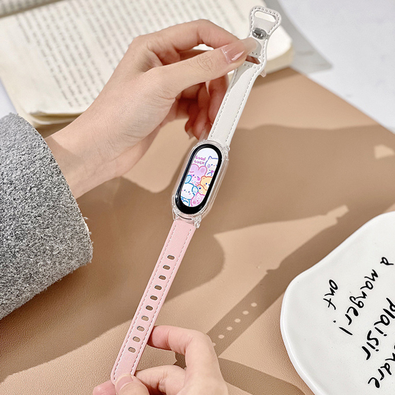 For mi band 8 strap leather color matching 7/6/5/4/3NFC wristband 8 buckle male and female personality tide