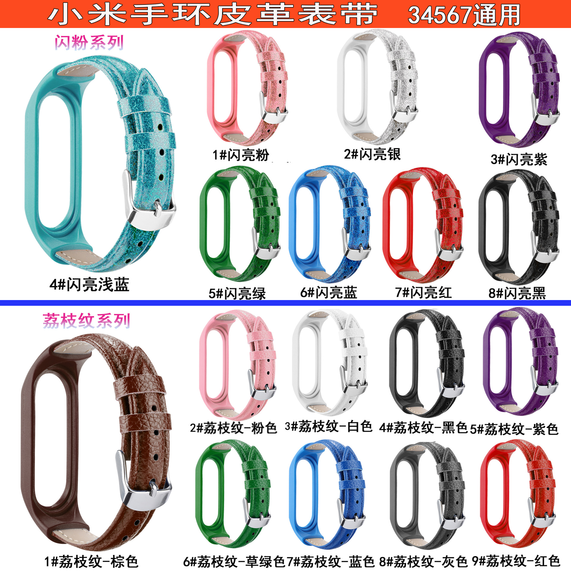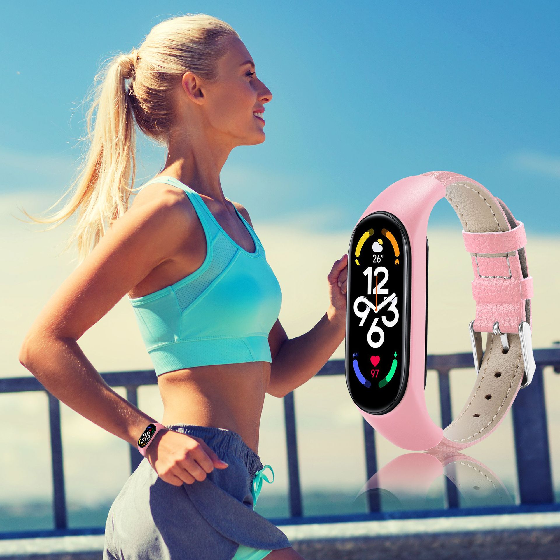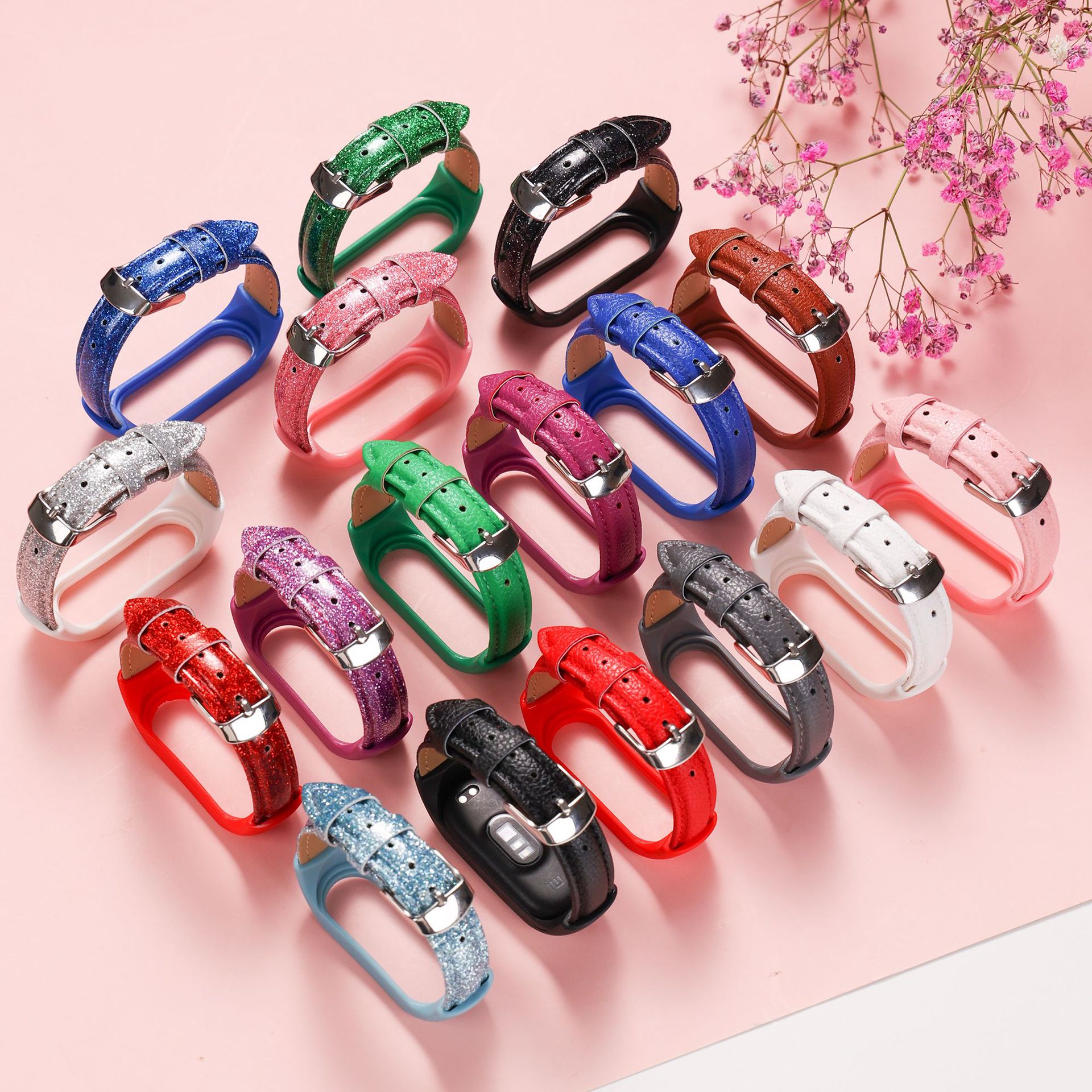 For millet bracelet strap mi3456 universal TPU bezel + PU leather strap millet bracelet 7 strap