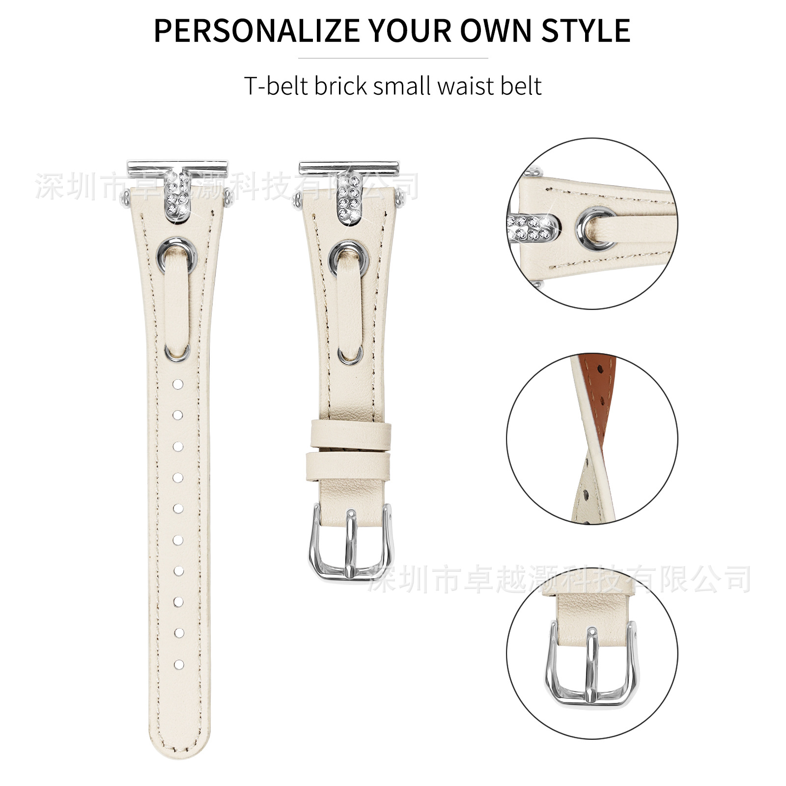 | nameOriginal | For Samsung watch4 T-shaped diamond-studded belt watch5 universal watch strap slimming small waisted leather belt |