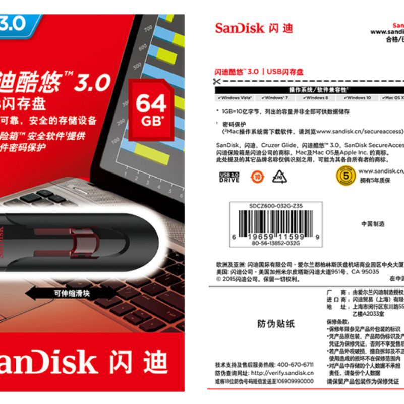 | nameOriginal | For Sandi 64GB USB3.0 U disk CZ600 cool black USB3.0 fashion office U disk |