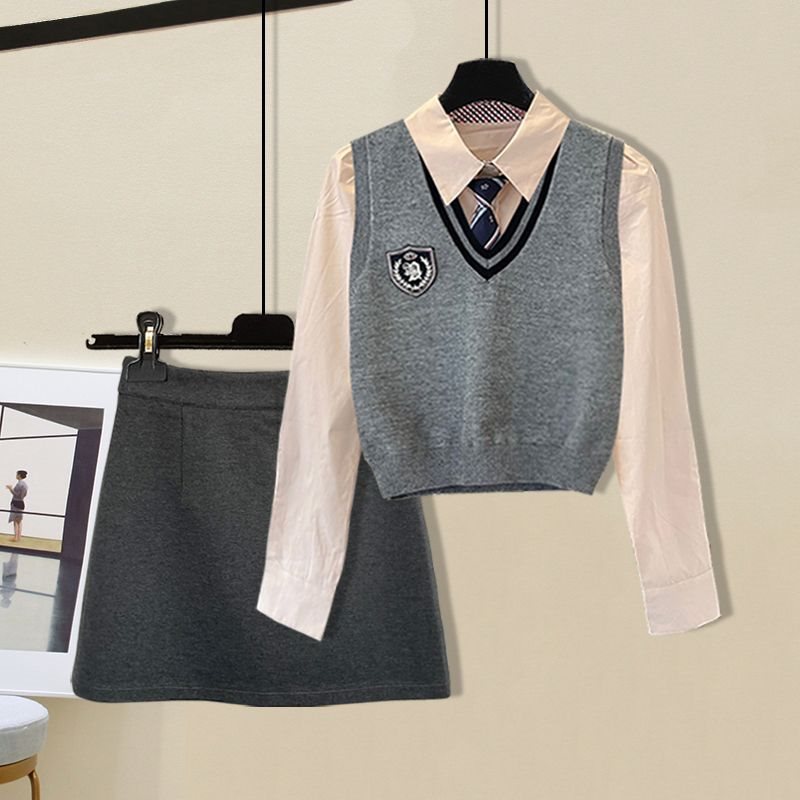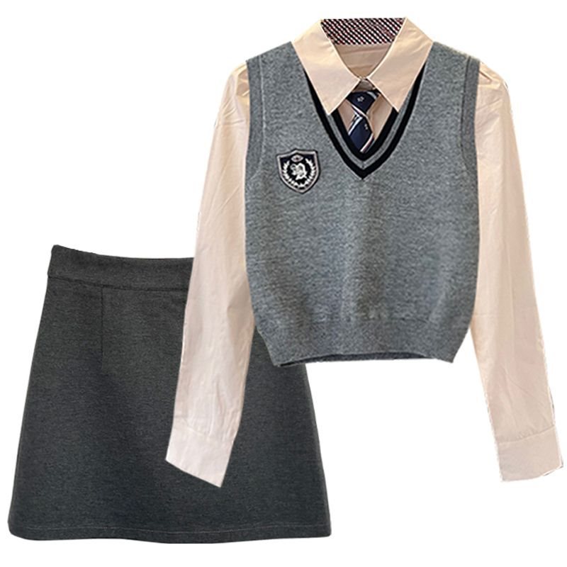 | nameOriginal | For Spice Girls College Style suit Women's Autumn New Tie Shirt Knitted Vest Hip Skirt Three-Piece Set |