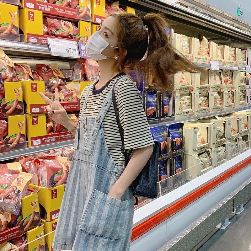 | nameOriginal | Foreign Style Age-reducing Denim Strap Pants Women's Summer 2024 New Korean Style Salt Sweet Striped Jumpsuit |