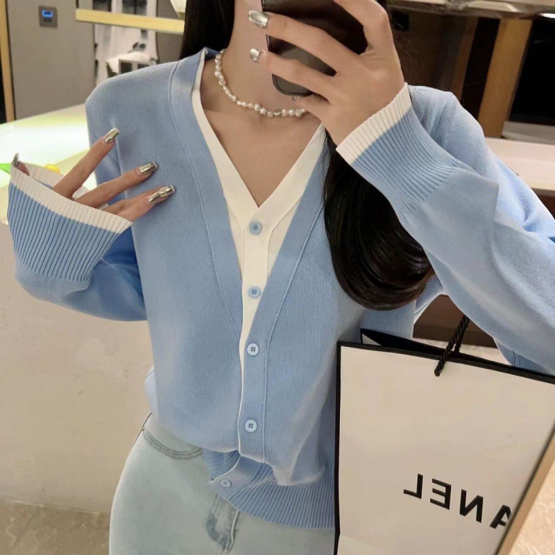 | nameOriginal | Foreign-style Contrast Color Long-sleeved V-neck Fake Two-piece Knitted Cardigan Women's Thin Sweater Elegant 2023 Early Spring New Top |