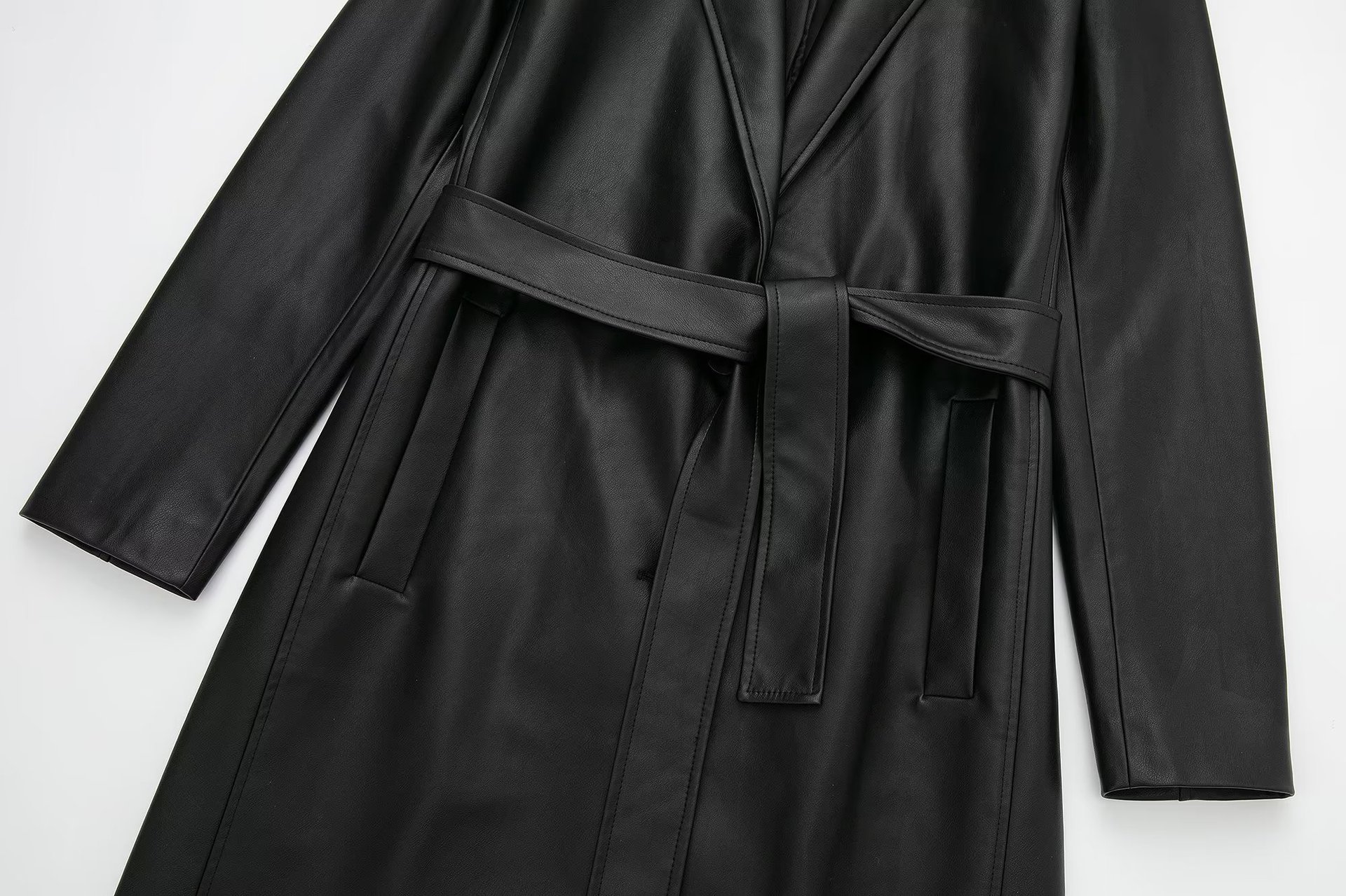 | nameOriginal | Foreign trade 2022 autumn and winter New European and American style fashion leisure retro long black imitation leather trench coat women's wholesale |