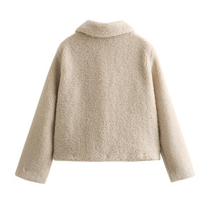 Foreign trade 2023 autumn and winter new women's clothing solid color lapel fleece short jacket lamb wool coat 8741230