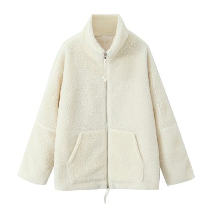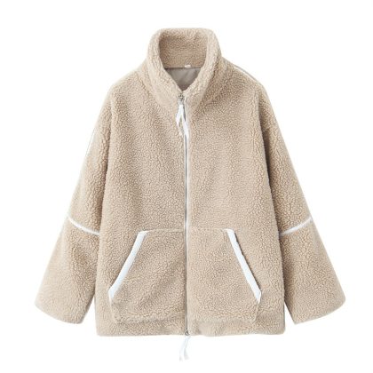 | nameOriginal | Foreign trade 2023 autumn new women's clothing fashion simple classic style Teddy velvet metal zipper jacket coat |