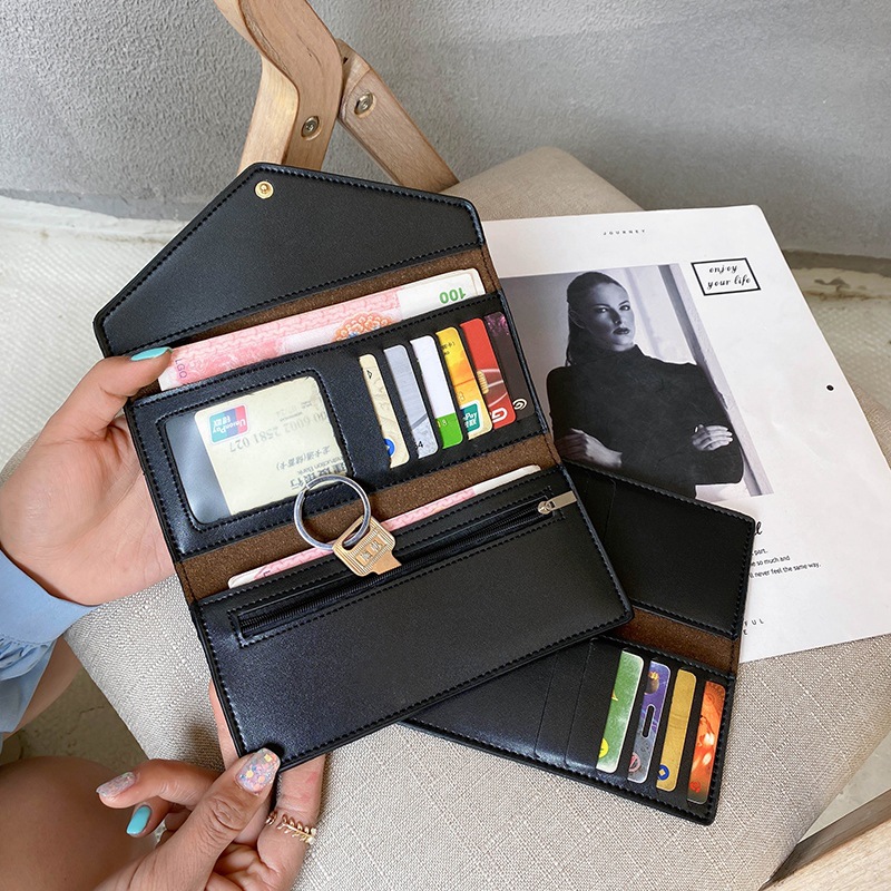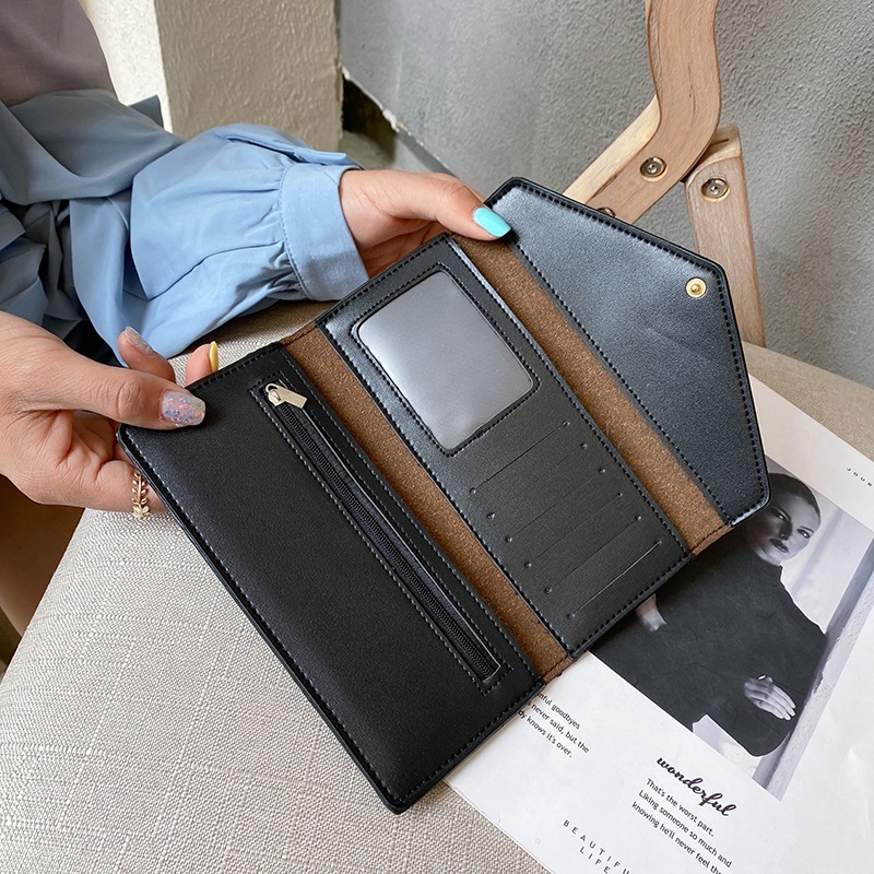 Foreign Trade 2023 Women’s Long Wallet European and American Fashion Vintage Envelope Wallet Bag PU Stitching Card Bag Hand-held Women’s Bag