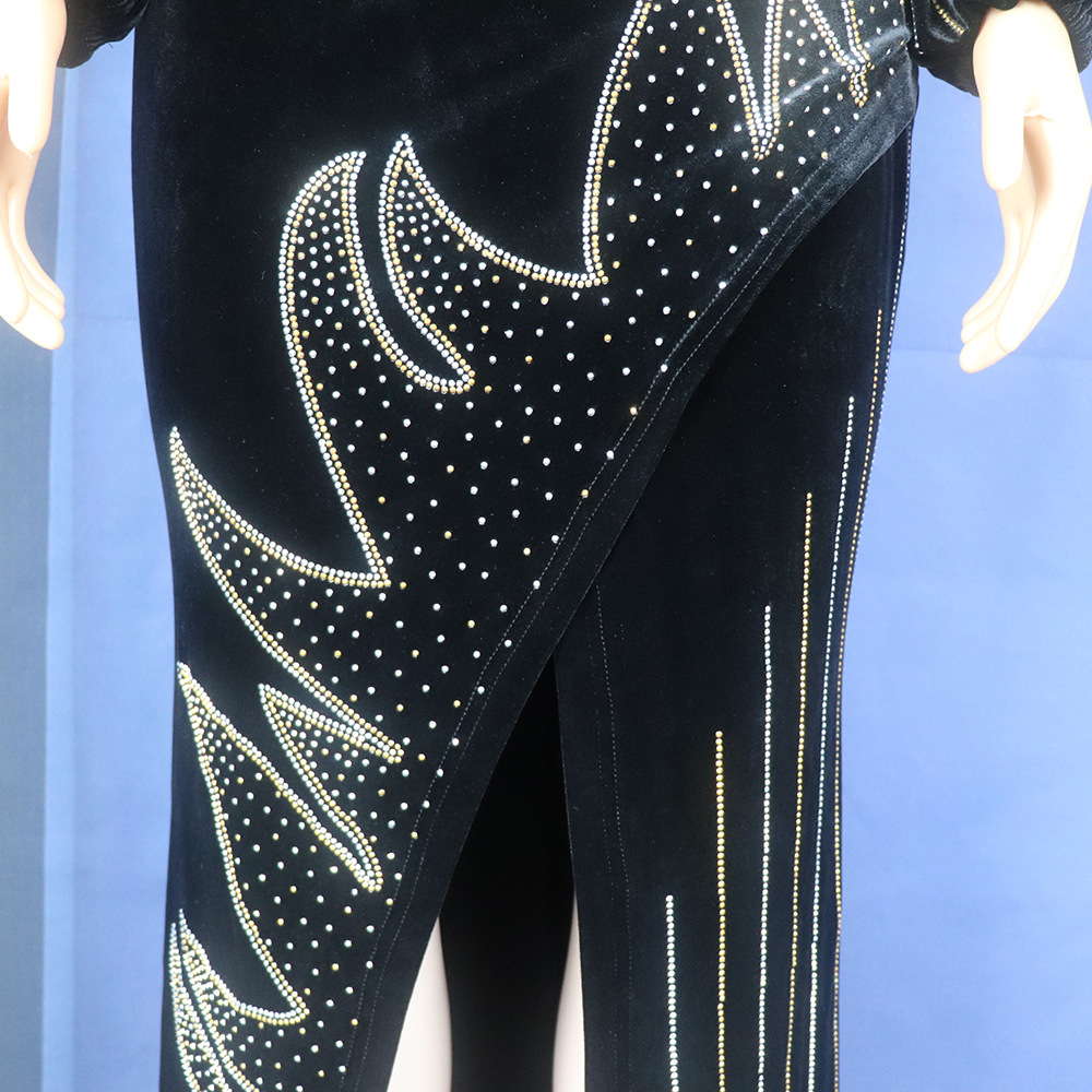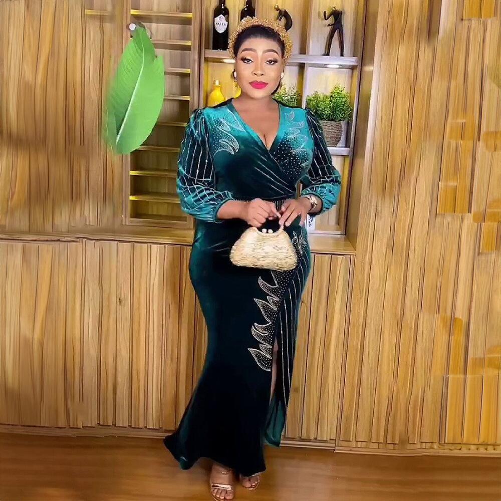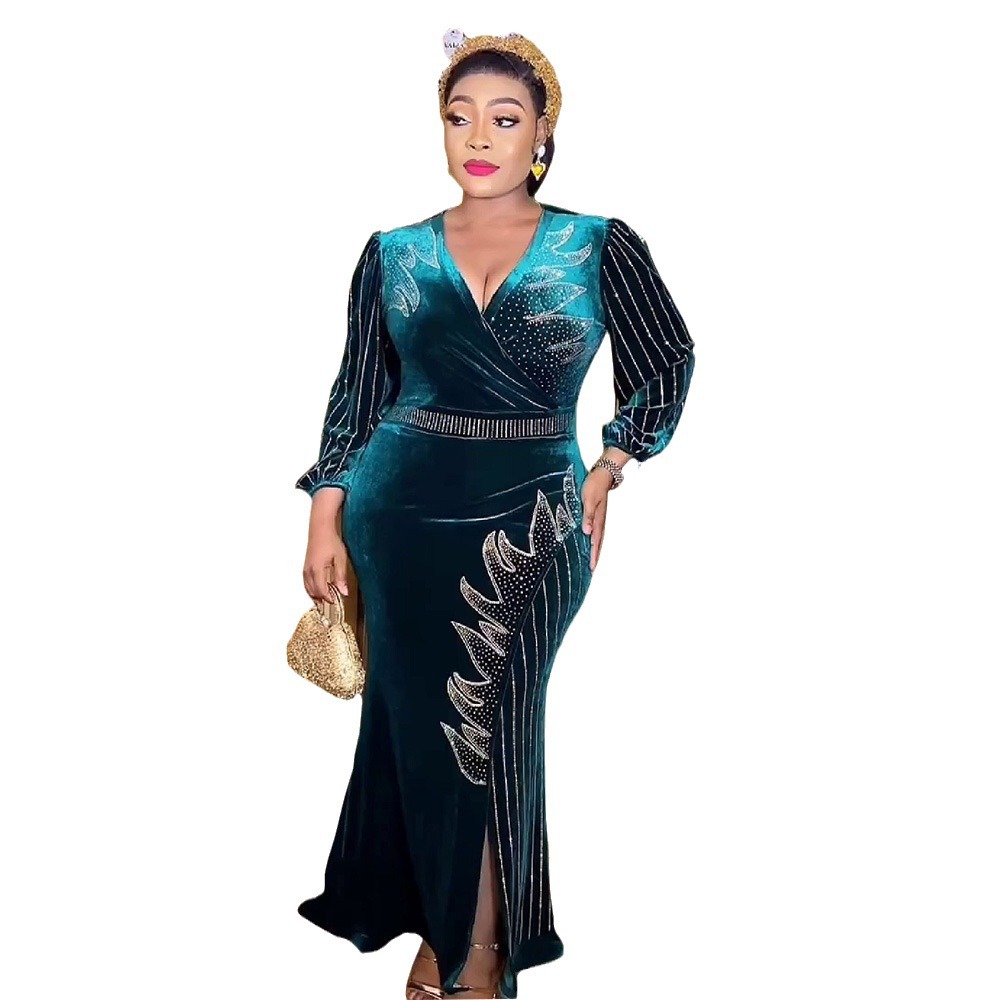 | nameOriginal | Foreign trade African women's fishtail skirt elastic gold velvet rhinestone V-neck long sleeve cross-border source in stock |
